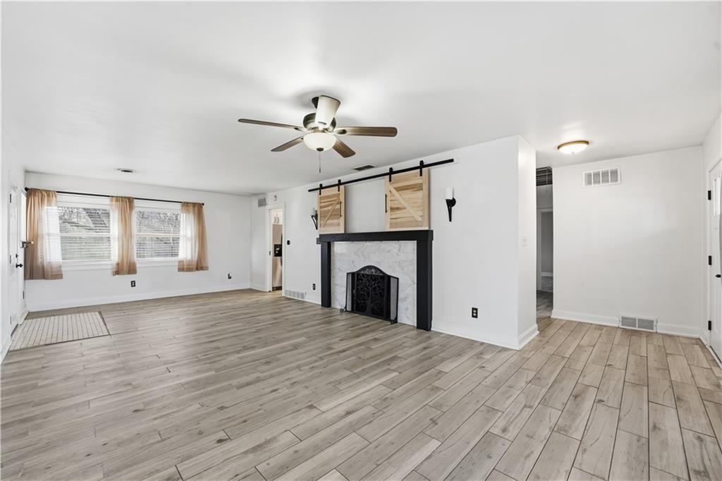 Welcome home to this stunning, move in ready Ranch tucked far back from the road on 1.6 private acres, offering peace, space, and modern updates throughout! The large kitchen is a dream, featuring stainless steel appliances, a deep stainless sink, granite countertops, tile backsplash, walk-in pantry, desk area and tons of cabinet space! Industrial shelving, and space for a cozy breakfast table make this the perfect spot for morning coffee. Refrigerator to stay. Enjoy a spacious living/dining room combination anchored by a gorgeous marble fireplace. This home offers beautifully updated large bedrooms and a fully updated bathroom. A generous laundry room also provides excellent storage or additional pantry space. Washer and dryer to stay as well, making this home truly turnkey. The additional rec room is perfect for a home office, workout space, or playroom, the options are endless. Outside features a deck overlooking a large private fenced backyard, ideal for relaxing or entertaining. The property includes an attached garage plus an additional shed, perfect for storage or a small workshop. Private. Updated. Main level living. Move-in ready. This one checks all the boxes! Property qualifies for 100% financing -with the seller including all appliances, you could move into a new home with little to no money out of pocket! This one is a must see!