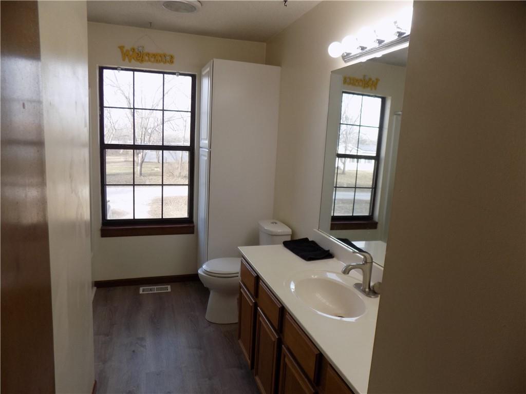 Great Starter Home in Pomona, KS. This 1995 Split-Level house has 4 Bedrooms and 2 Full Baths, large living room with vaulted ceiling and open view into the kitchen. Stainless steel appliances are staying. Home has a brand new roof and exterior paint. Nice two car garage with exterior door leading to the chain link fenced back yard.
