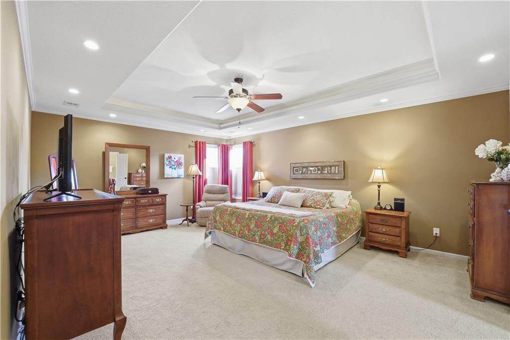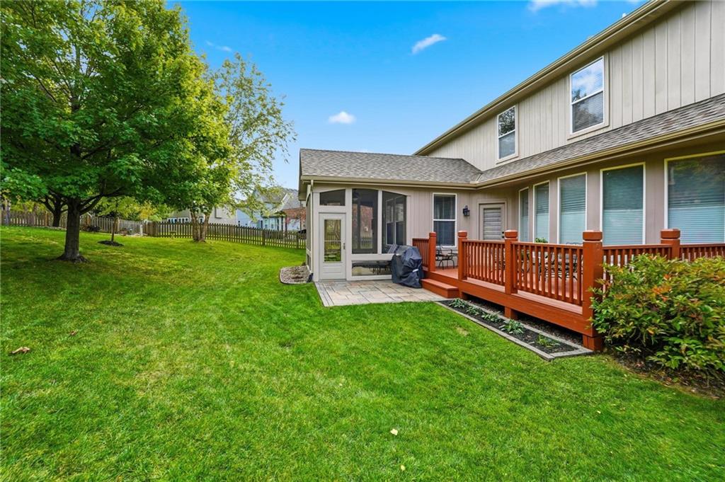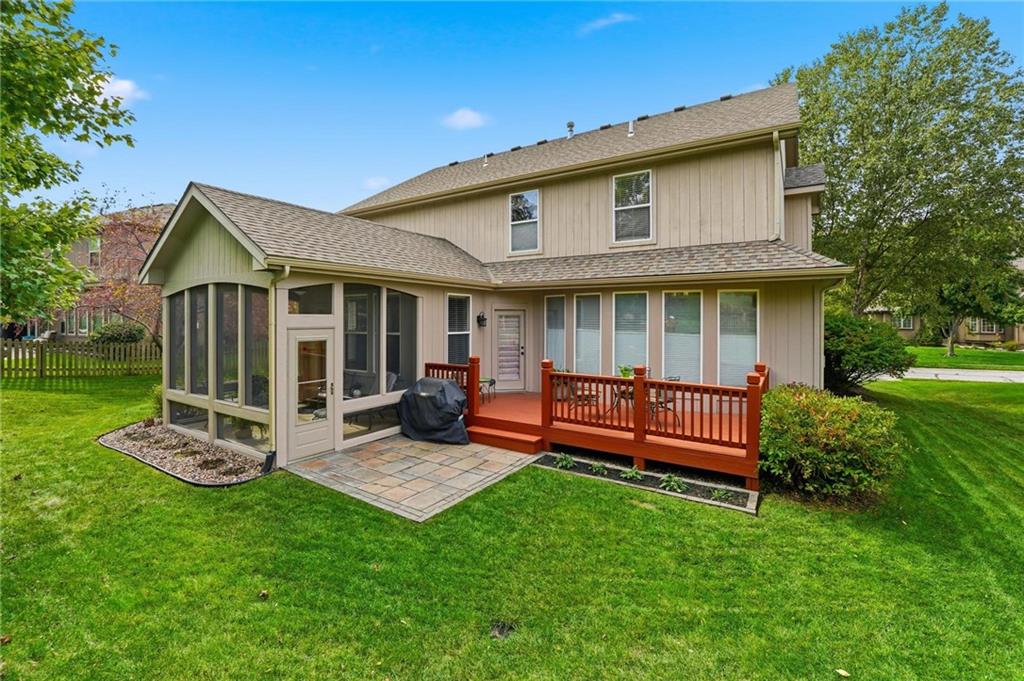 Located in the highly sought-after Hawksbury subdivision, this beautiful two-story home offers 4 bedrooms, 4.5 bathrooms with 3 car garage in a well-designed layout. Situated within the Platte County R-III School District, the home is conveniently located near shopping and dining and just a quick golf cart ride to Tiffany Greens Golf Course. The main level features an eat-in kitchen with granite countertops, a large walk-in pantry plus a secondary pantry, and a formal dining room ideal for entertaining. Relax and Enjoy your morning coffee in the enclosed sun porch. The primary suite provides a private retreat with a soaker tub and a generous walk-in closet. The finished lower level adds additional living space and includes a wet bar for entertaining, an office or bonus room with built-in bookshelves and cabinets, and two generous storage areas. Surround sound speakers in the finished lower level will remain with the home. Perfect for movie nights! Outdoor features include a spacious deck overlooking a well-maintained yard, an in-ground sprinkler system, and motion-activated security lighting. Recent updates include a new roof (2021) and new dishwasher. This home offers space, functionality, and an excellent location—don’t miss the opportunity to make it yours.