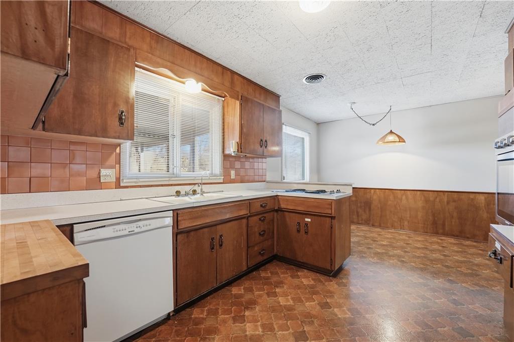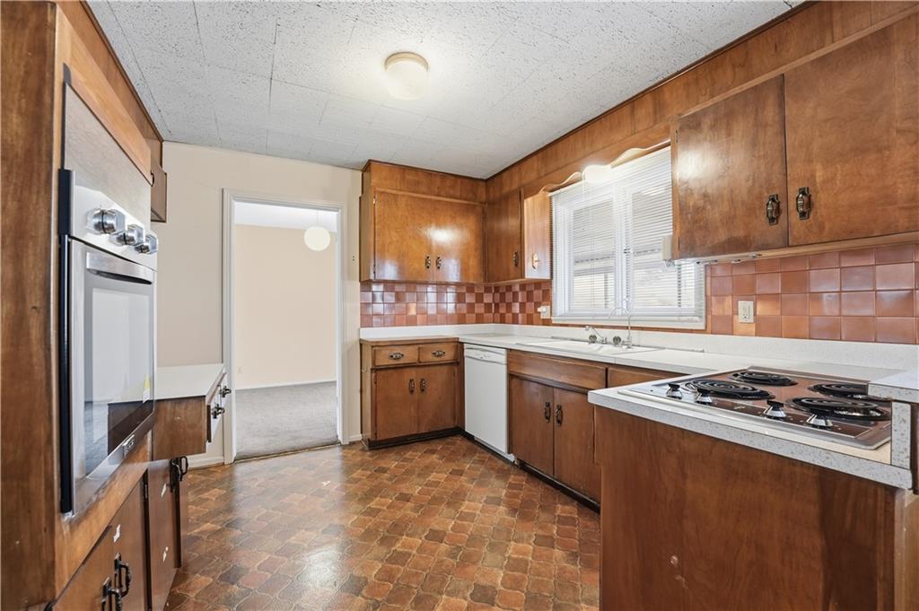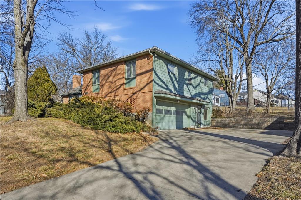 Cash in on all the social capital of a Ward Parkway address! This charming 4 bedroom, 2.5 bathroom sits on a corner lot in close proximity to a vibrant shopping district! Main level features great room with mid century modern vibe fireplace and adjacent formal dining. Just off the formal dining room is a sun porch full of natural light, a great place to unwind, and concrete patio beyond for outdoor enjoyment. Kitchen features tile backsplash, newer oven (2024) and breakfast area. Down a short flight of stairs is a family room with extra space to host gatherings with friends and family. Family room has egress door to driveway as well as an adjacent half bath to service common areas. Upper level features a primary bedroom with ensuite bath and three additional bedrooms. A second full half bath off the hallway features surround subway tiles and shower over tub. Multiple rooms throughout home have original hardwood floors waiting to be discovered! 2 car garage features appealing side entrance. Convenience is at your doorstep! This home is located just minutes from trendy cafés, locally owned shops, and easy transit options. Modern amenities nearby include everything from yoga studios, parks, and entertainment to grocery stores. Come add your finishing touches to make this home uniquely yours!