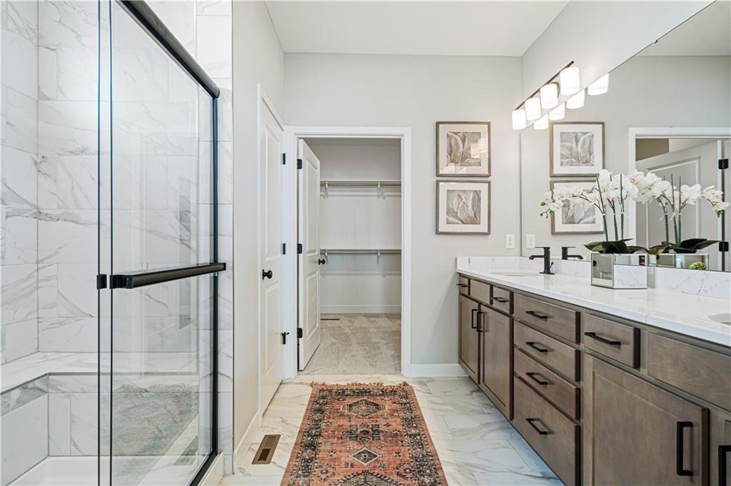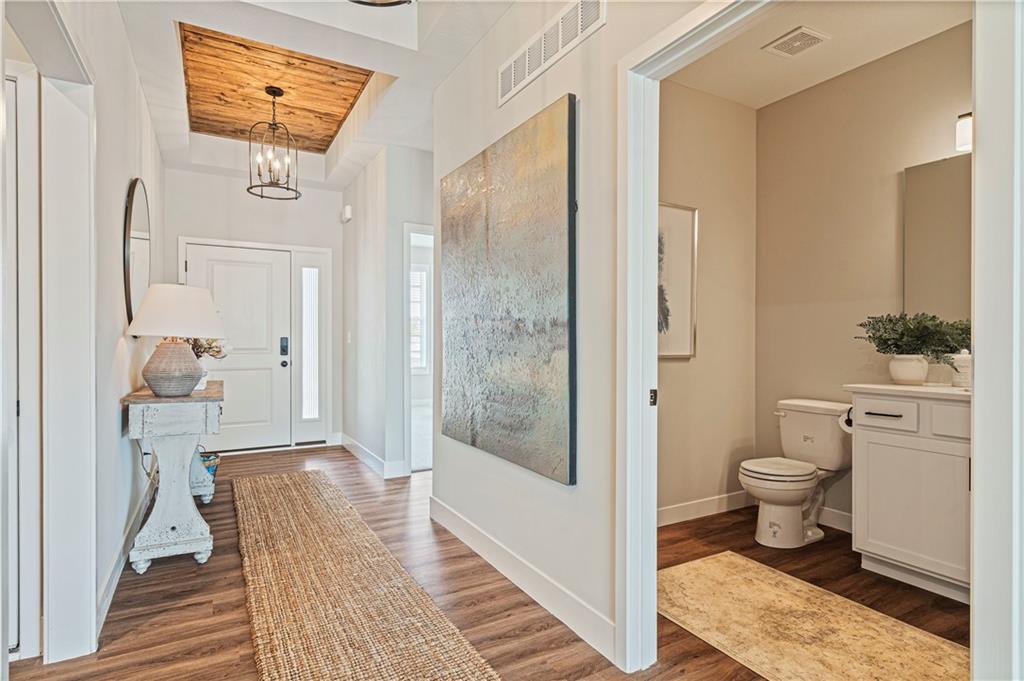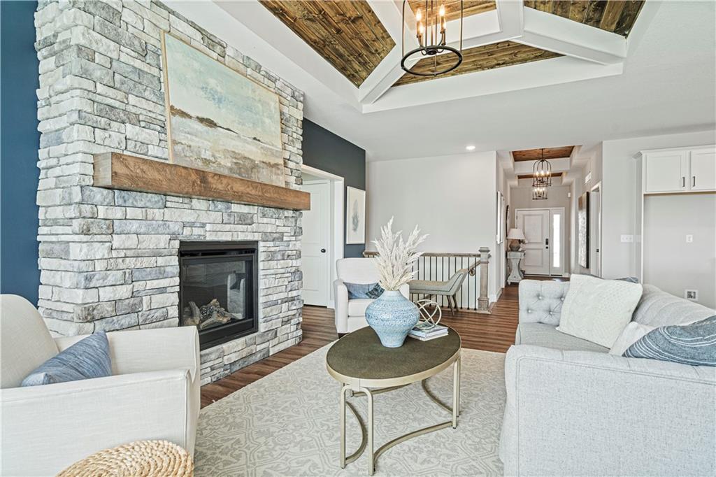 Welcome to the innovative design and modern style of Ashlar Homes! The popular Graysen plan, featuring the Modern Heritage elevation. Experience the perfect blend of modern elegance and functional design in this stunning new construction ranch. This home features high-end James Hardie® board with ColorPlus® Technology siding and advanced double-wall construction. Spanning 1,683 square feet on the main level, the home welcomes you with an open-concept great room featuring a dramatic box vault ceiling with custom car siding detail and a floor-to-ceiling stone fireplace with a wood mantle. The chef-inspired kitchen is equipped with Frigidaire® stainless steel appliances, a gas stove, beautiful quartz countertops, and a custom tiled backsplash. Retreat to the expanded primary suite, which boasts a ceiling fan and a luxurious bathroom finished with tiled floors, a walk-in tiled shower, and quartz vanities. Attention to detail is evident throughout with an upgraded trim package featuring taller baseboards and fully trimmed windows. Outside, enjoy a widened driveway leading to an insulated three-car garage, and relax on the 12x12 composite deck or lower patio. The massive walk-out unfinished basement is already stubbed for a future bathroom, offering a blank canvas to expand your living space. Come see Spring Hill's newest affordable choice for new home construction, at Fox Hollow! Under construction and Coming Soon! At framing stage.