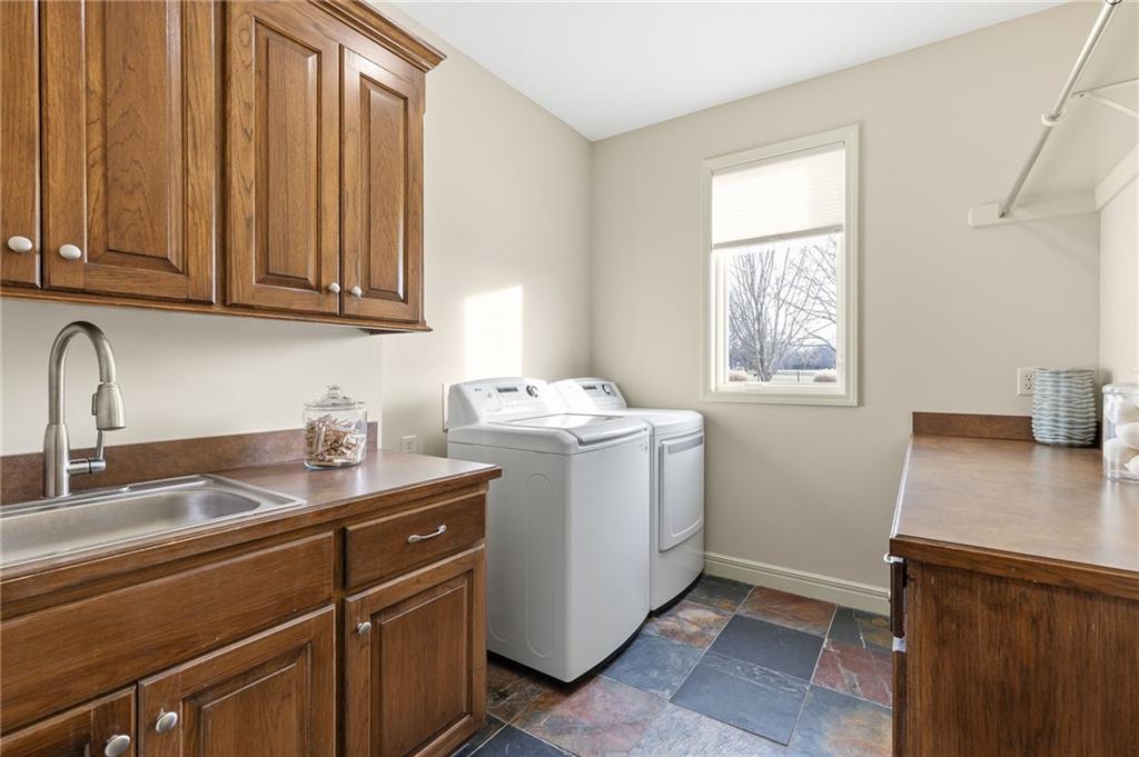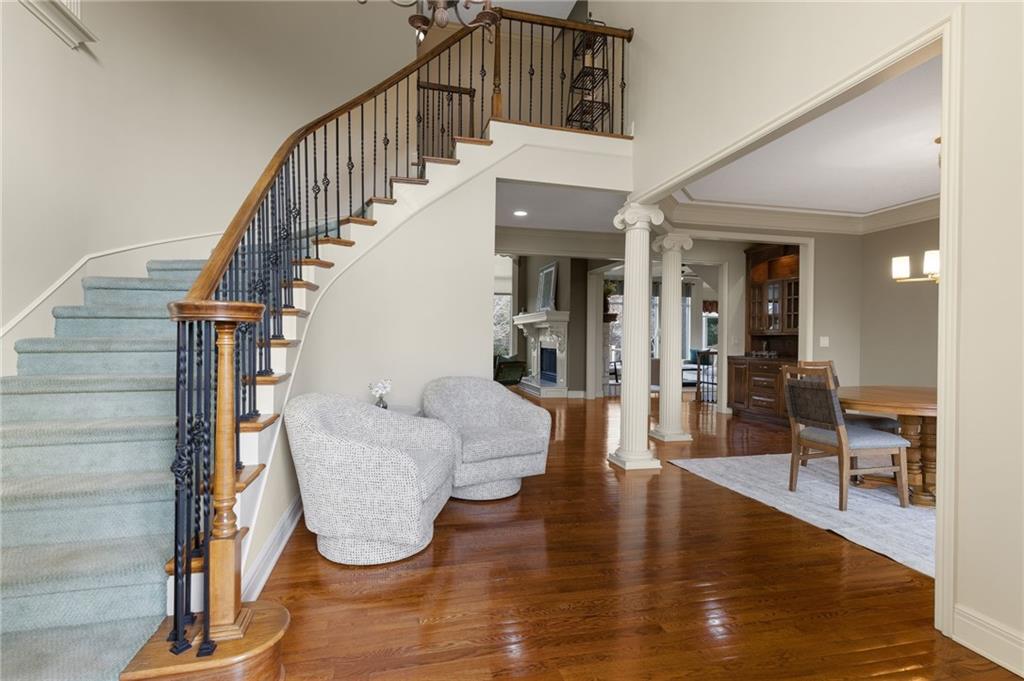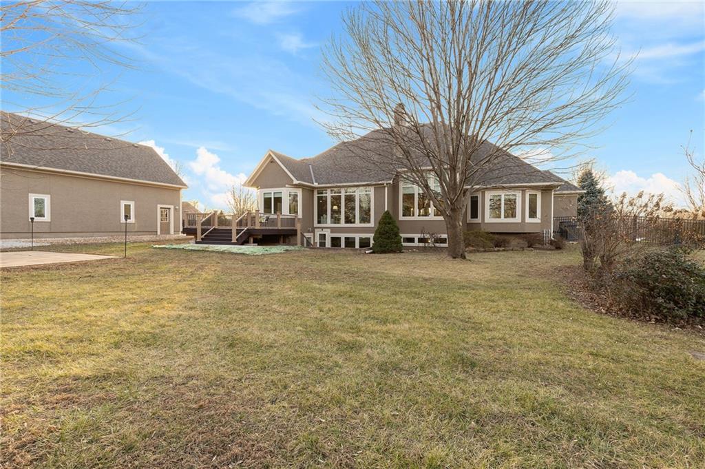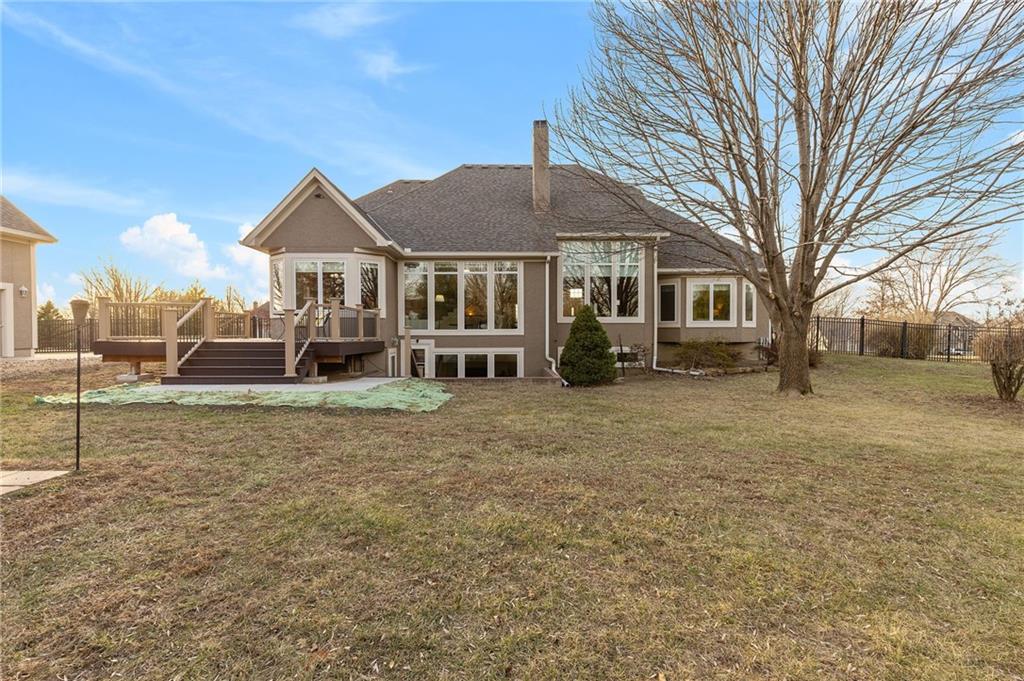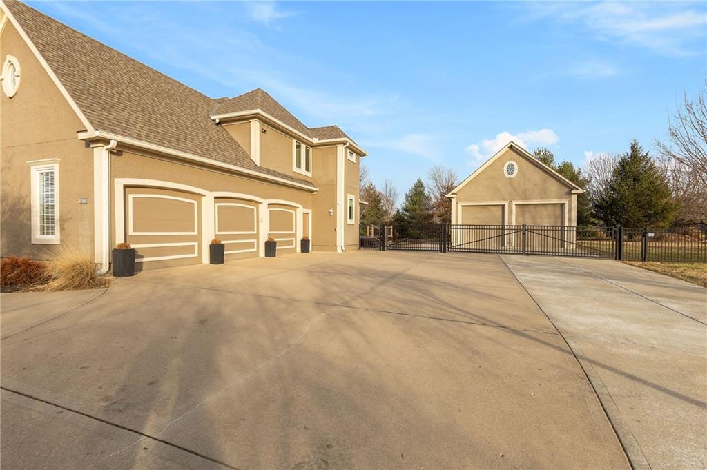Classic country living meets refined craftmanship in this spacious, meticulously maintained 5-bedroom, 4.1 bath custom-built home, nestled on a private, fenced lot just under two acres. The all-stucco exterior with stone accents offers timeless curb appeal, complemented by an oversized 3-car side-entry garage. Inside, you'll find pristine hardwood floors, tiled bathrooms, and thoughtfully designed living spaces. The gourmet kitchen features premium wood cabinetry, granite countertops, and a large island-perfect for entertaining. Cozy up in the inviting hearth room or the living room, both showcasing stunning stone and paver-brick fireplaces. The finished walk-up lower level provides exceptional versatility with a spacious recreation room, wet bar, fifth bedroom, access to the private outdoor patio, and abundant storage. A 26X36 detached garage adds even more parking and storage options. Offering a first-class lifestyle in the serene setting of Southern Johnson County, this exceptional home combines privacy, comfort and quality craftmanship.
