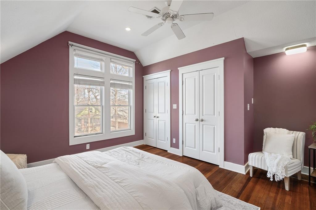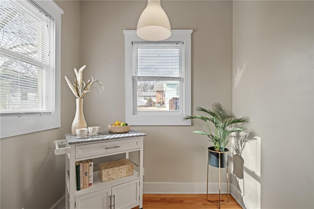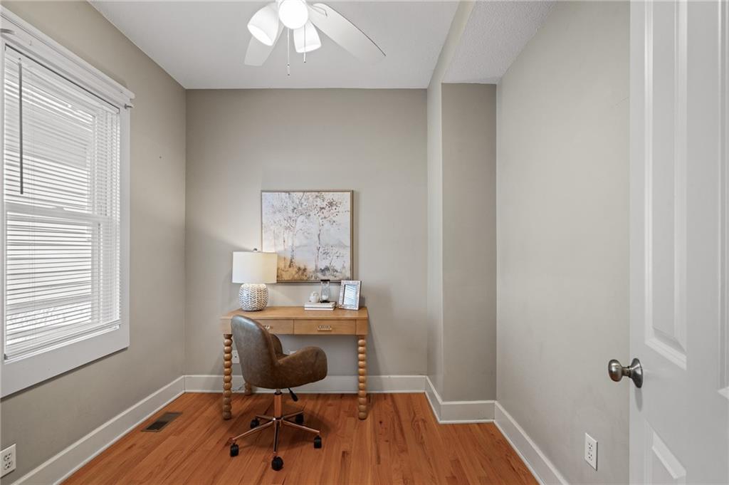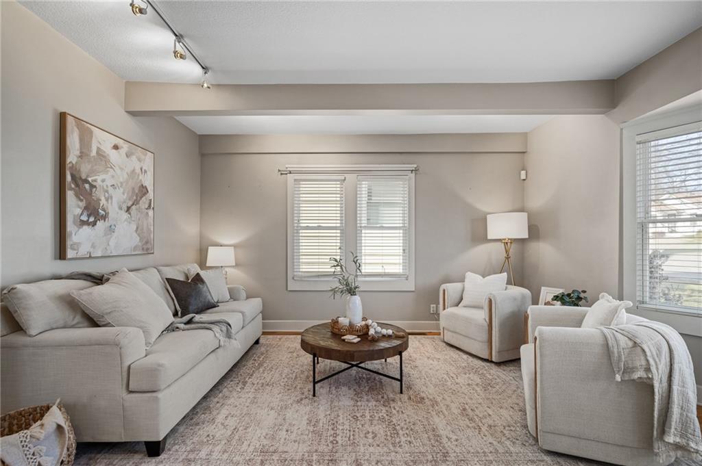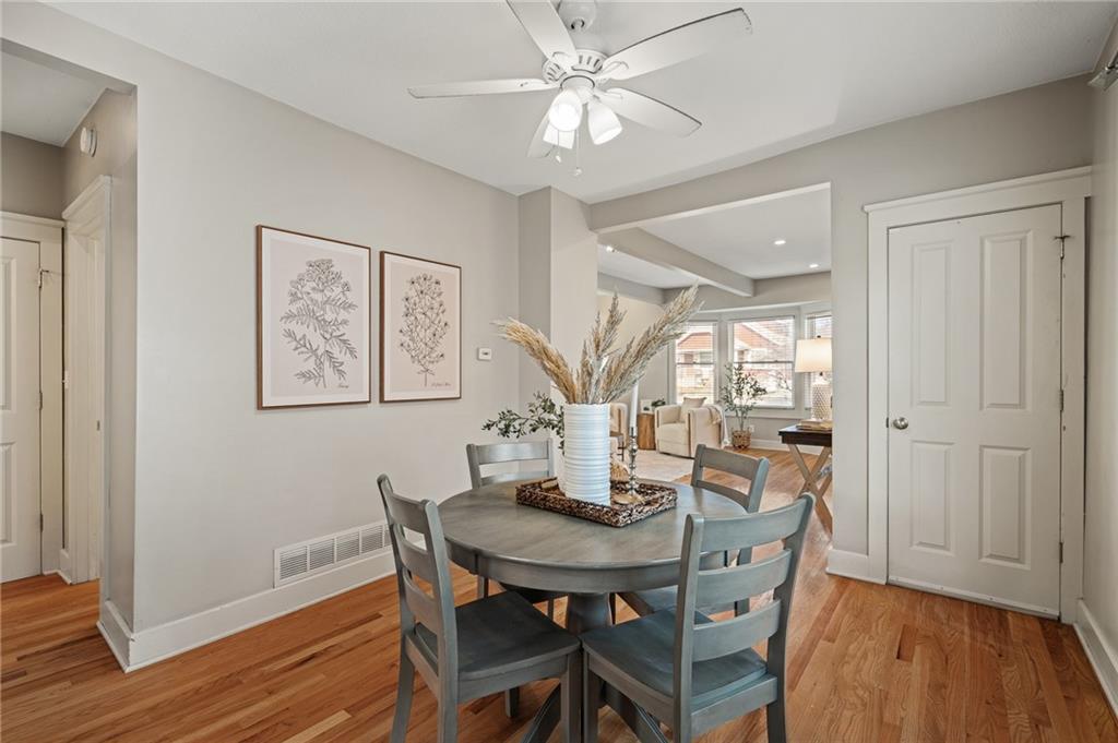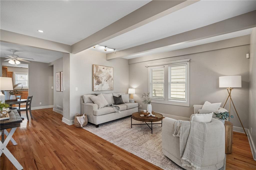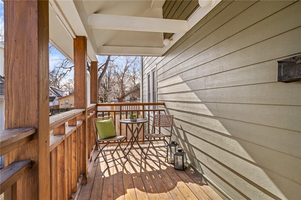 Charming, light-filled, and beautifully updated, this darling two-story home is easy to love. From the inviting façade of quality Hardie Board siding and fresh exterior paint to the expansive stained deck, every detail feels thoughtfully designed. Inside, white oak flooring sets a calm, cohesive tone throughout the main level, where a bright bay window creates the perfect sitting area and open sight lines lead to the dining space and kitchen. The kitchen impresses with quality white oak cabinetry, appliances that stay, and a bonus coffee nook or butlers pantry waiting for your touches. A full bath and a private work-from-home area round out the first floor. Upstairs, the serene primary suite features built-in bookcases, two spacious closets, and charming sconces, while the sun-drenched hall bath connects seamlessly to both bedrooms. The tall, poured-concrete basement offers excellent potential for future living space. Outdoors, enjoy a spacious, manicured backyard with room to play, plus convenient lawn storage beneath the deck. Located just a short distance to neighborhood favorites including Lulu’s Thai Noodle Shop, Joe’s KC Bar-B-Cue, Woodside Health Club, and KU Medical Center—this home delivers comfort, style, and an unbeatable location.