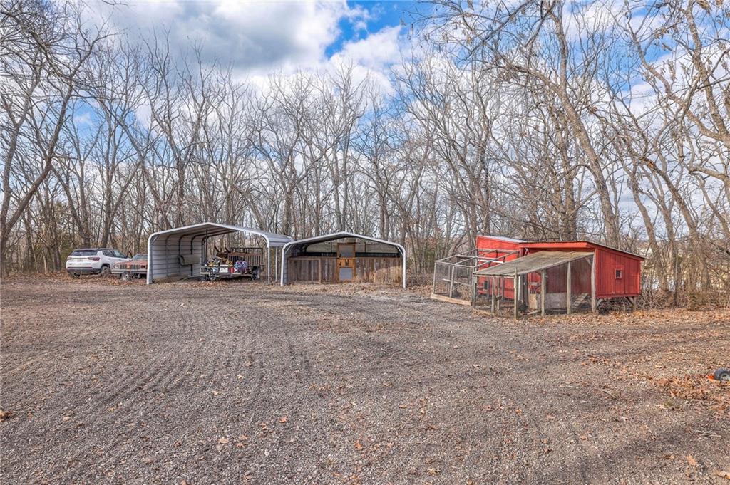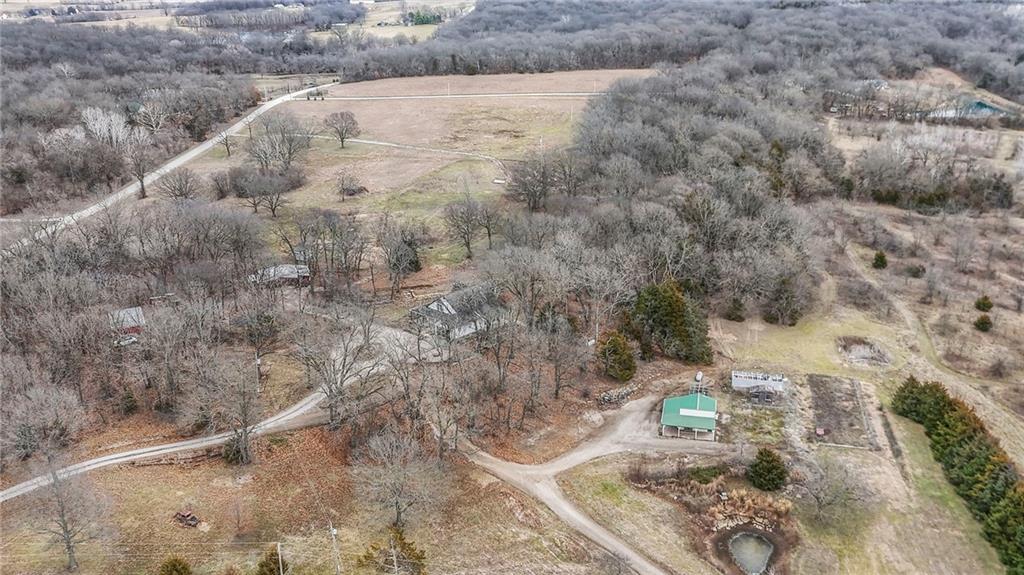 Discover an incredible opportunity to own a beautiful 23-acre hobby farm, with picturesque wooded areas and rolling pastures—ideal for outdoor enthusiasts, hunters, and anyone dreaming of country living! This unique property features a spacious 2,046 sq ft main home, freshly painted on the exterior and topped with a brand-new roof prior to closing for peace of mind. A welcoming covered porch invites you to relax and enjoy panoramic views of nature, while inside, the large kitchen boasts a gas and electric cooktop, refrigerator, two sinks and an island for gatherings. The master suite is thoughtfully designed to be wheelchair-friendly, with a spacious walk-in shower for comfort and accessibility. The main living room has soaring vaulted ceilings and expansive windows for great views outside to see the deer in the yard. Retreat upstairs to a cozy bedroom featuring a fireplace, built-in safe, and your own private covered balcony—the perfect spot for quiet mornings with coffee. Plus a 4th non conforming bedroom. For your guests or multigenerational living or a business office, the secondary living quarters (491 sq ft) comes complete with its own driveway for privacy and convenience. Enjoy the ultimate rural lifestyle with an outbuilding with a wood-burning stove, chicken coop, two carports, a pond, raised garden beds, garden shed, patio with fire pit, storm shelter, and an orchard. Additional highlights include three driveways, an average hay yield of 56 bales per year, and plenty of room for tree farm, nursery, gardening, livestock or future expansion. Nestled in a tranquil country setting, this property offers something for everyone. Please note: a manufactured home currently on site will be removed in January and is not included in the sale.