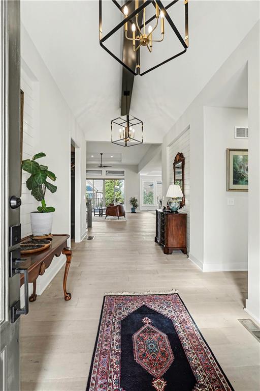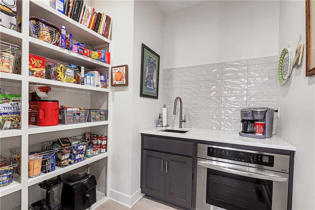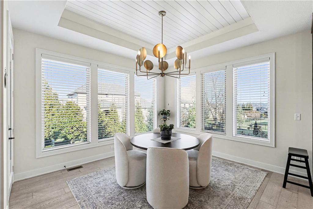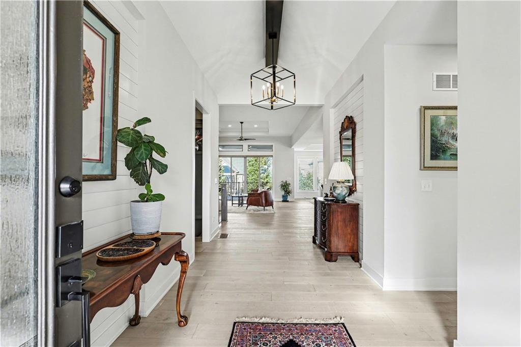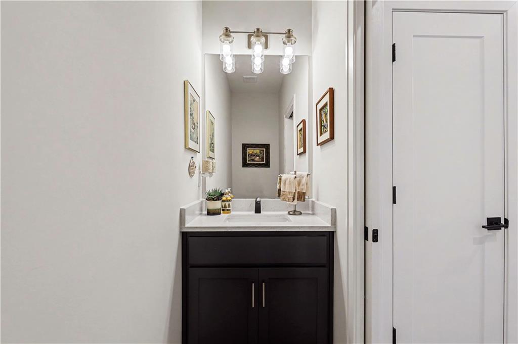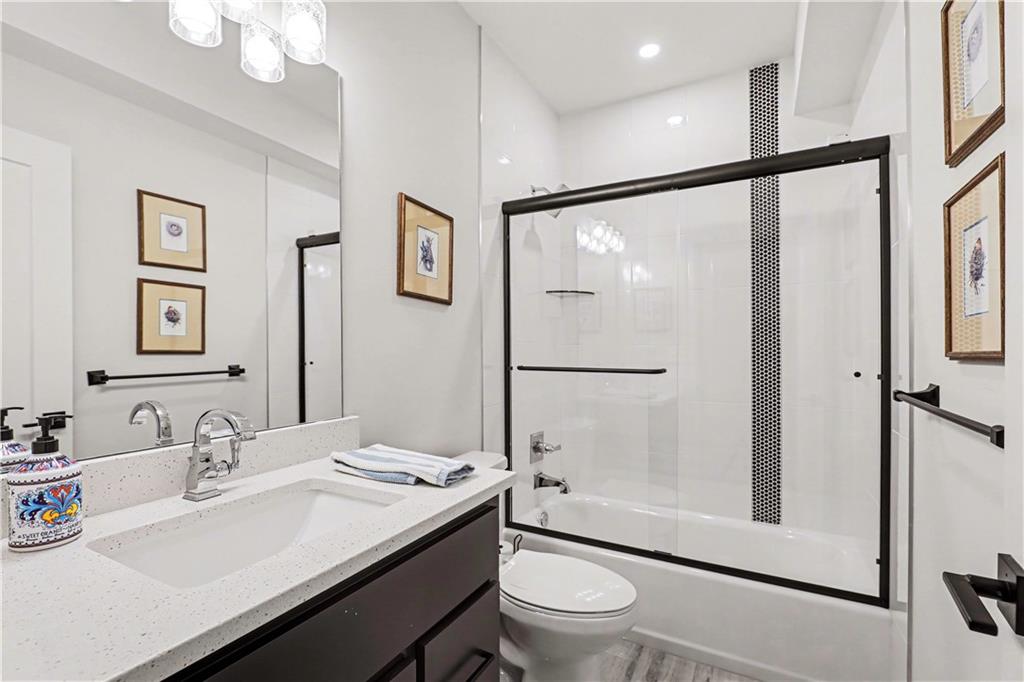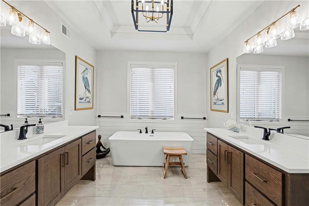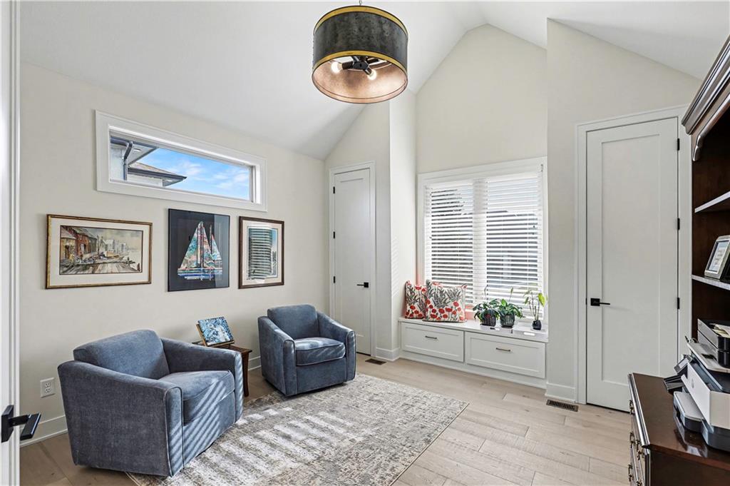 Exquisite Luxury Living in a Scenic, Sought-After WatersEdge Community Step through impressive double doors into this meticulous, less than 5-year young home, where refined design and thoughtful functionality come together effortlessly. The spacious great room is anchored by a striking fireplace and flows seamlessly into the chef-inspired island kitchen, complete with a walk-in pantry and second oven—perfect for entertaining and everyday living. The private primary suite is a true retreat, featuring an expansive walk-in closet and a spa-inspired bath with a beautifully tiled walk-in shower, dual quartz vanities, and a deep soaking tub designed for relaxation. The suite also offers direct access to the covered deck. A conveniently located laundry room off the primary closet adds ease to daily routines, while a second laundry in the lower level enhances flexibility. Also on the main level is a spacious second bedroom currently used as a home office, offering excellent flexibility as a private guest suite. It is served by a full bathroom featuring a luxury tiled shower—ideal for visitors or multi-generational living. An elegant curved staircase leads to a beautifully finished lower-level recreation room with a full bar, ideal for hosting gatherings. Two additional bedrooms, two bathrooms, and a versatile bonus room provide generous space for guests, hobbies, or work-from-home needs. Throughout the home, luxury finishes and custom craftsmanship reflect pride of ownership and a lightly lived-in feel. Located within a highly desirable subdivision celebrated for its scenic ponds, waterfalls, and tranquil water features, this exceptional property offers timeless appeal, comfort, and a premier setting in an unbeatable location.
