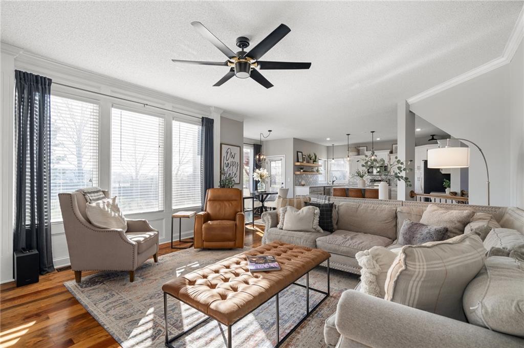There’s no better way to start the new year than in a home this beautiful. Masterfully designed and stylish, your new 4 bedroom, 3.1 bath home with 3 car garage sits on a large corner lot in and checks boxes you didn't even know you needed! The main level is open and airy with a grand 2 story entry, a dining room with new carpet, and lots of fresh interior paint. The updated kitchen features a large quartz island, pantry, and flows right into the breakfast room and great room with a fireplace, think cozy mornings and sparkling evenings. Upstairs, the primary suite is super spacious with a sitting area, walk-in closet, and an updated bath with new LVP, soaker tub, and separate shower. Secondary bedrooms are generously sized with walk in closets and two additional full baths. Zoned HVAC adds year-round comfort by allowing customized temperature control throughout the home. The finished lower level offers an open rec room, flex space, heated floors, and great storage. Outside, the expanded patio with pergola is ideal for hosting or relaxing any time of year. Oak Run offers a neighborhood pool, top rated West Olathe schools, easy highway access, and is close to Lake Olathe. A perfect home in a great location where amazing memories are waiting to be made!