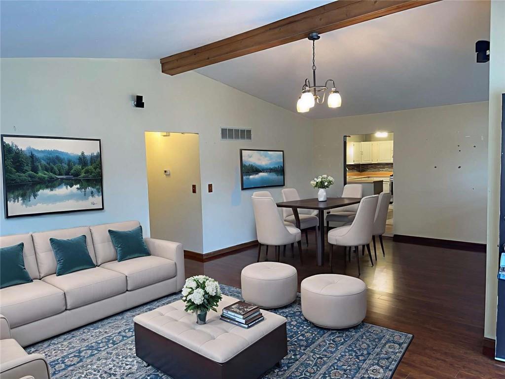 Welcome to this well-maintained ranch home nestled on a quiet cul-de-sac in the sought-after Talisman Trails neighborhood. With 3 bedrooms, 2 full baths, and a convenient half bath on the lower level, this residence offers bright, open living spaces, thoughtful updates, and plenty of room for comfortable living and entertaining. Highlights & Features Spacious living room at the entry with a vaulted ceiling and wood-burning fireplace, providing a warm and welcoming atmosphere. Formal dining area seamlessly connected to an open stairwell leading downstairs — perfect for larger gatherings or meals. Well appointed kitchen with wood cabinetry, pantry, gas range, dishwasher, disposal, and direct access to the attached 2-car garage — great for everyday convenience. Kitchen opens to a patio and private fenced backyard, offering a nice outdoor space for summer barbecues or relaxing evenings. Finished lower level includes a cozy entertainment room and a convenient half bath — ideal for recreation, a home office, or extra living space. Master bedroom with full bath; both the hall and master bathrooms have updated vanities and faucets. Other updates include a newer roof, vinyl siding, central air, and tilt-clean windows — minimizing maintenance for the new owner. Sidewalk in front of home, and meticulous landscaping adds strong curb appeal. Ideal For Buyers seeking a move-in-ready ranch home with flexible living space, a private backyard, and a quiet suburban cul-de-sac setting — whether you’re a first-time homebuyer, or someone looking to downsize without sacrificing space and comfort.