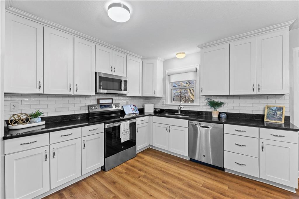 Welcome to convenience and comfort in Overland Park, a well-maintained and inviting home offering beautiful living spaces and thoughtful updates throughout. The main level features a bright and functional layout with a main floor laundry for everyday convenience. The kitchen boasts soft close cabinets and granite countertops. Great space for lots of lifestyles - roommates, main floor living, generational living. The finished basement expands your living options with a non-conforming 4th bedroom, ideal for a guest room, home office, gym, or craft space, along with additional room to relax or entertain. You’ll appreciate the oversized garage, offering excellent storage and workspace in addition to parking. Located in a desirable Overland Park neighborhood close to schools, parks, shopping, and dining, this home offers a great blend of updates, functionality, and location.