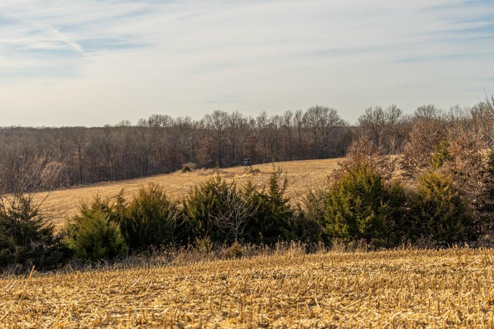 Located north of St. Catharine and only ½ mile off blacktop Highway 11, this exceptional 252± acre farm offers a rare blend of immediate income, elite hunting, and long-term investment potential. Approximately 140± tillable acres are cash rented for the 2026 crop year, providing dependable return while enhancing the property’s ability to hold and grow mature whitetails. This is a proven hunting farm, with numerous trophy deer harvested and photographed over the past several years. The diverse habitat also supports strong populations of turkeys and small game, making it a well-rounded recreational property. With nearly 100 feet of total elevation change, the landscape is defined by high open ridges, wooded slopes, and deep timbered draws that naturally funnel into creek bottoms. Multiple creeks and ponds provide reliable, year-round water sources. The property’s size and layout—stretching a mile deep—create exceptional seclusion, low hunting pressure, and outstanding wildlife management opportunities. The mix of terrain and cover produces ideal bedding areas, staging zones, food sources, travel corridors, and pinch points. Several elevated blinds and strategically placed treestands are already in place, allowing the next owner to hunt immediately. Established creek crossings offer efficient, low-impact access throughout the farm for both hunting and farming operations. The hardwood timber shows solid age structure and includes a number of walnut trees that may be suitable for a future select harvest. Designed with hunting camp in mind, a brand-new 30x40 Morton building has been constructed and is fully insulated with power in place. Interior walls have been framed and plumbing roughed-in, allowing the buyer to easily customize living quarters to fit their needs. Additional features include a covered concrete patio and an overhead door with opener. Two 40-foot shipping containers provide additional secure storage for equipment, tools, gear, and toys.