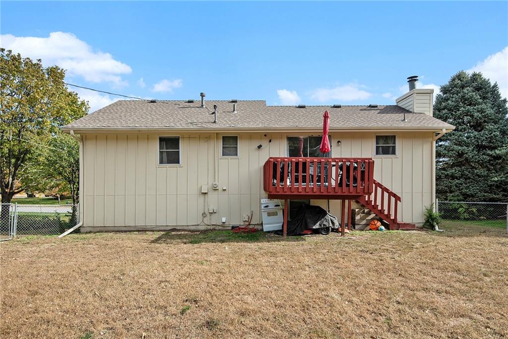 Beautiful SHORT SALE home in Rolling Meadows. Step inside to a large, light-filled living room with vaulted ceilings, creating an open and inviting feel. Kitchen with tile countertops opens to dining room and features pantry, plus new dishwasher, sink and cooktop with double oven. Three comfortable bedrooms on the upper level offer flexibility for sleeping, office space, or guests. The primary suite features private bath, a walk in closet and updated shower. An additional updated shower in the hall bathroom. The finished basement provides a second living space—ideal for a second family room, play area, home gym, or media room, plus a fireplace, half bath and 4th bedroom. Enjoy outdoor living in the fenced backyard with mature trees, offering both shade and privacy. Whether relaxing, gardening, or entertaining, this yard is ready for you. New carpet in living room, upper level bedrooms and stairs, Newer roof, gutters, front door, storm door, garage openers, and garage doors add peace of mind and low-maintenance ownership. Bonus upgraded electrical panel to 200 amp and new water softener, plus water heater with expansion tank. Extra deep garage with side exterior door, perfect for storage or workshop. Nestled on a cul-de-sac, near local schools, parks, shopping, Fort Leavenworth, and highway access, this home delivers convenience and comfort in one package. Schedule to see today! INPSECTIONS are welcome for the buyer knowledge only, no repairs to be made by seller.