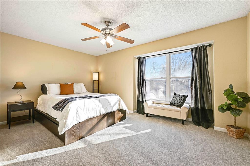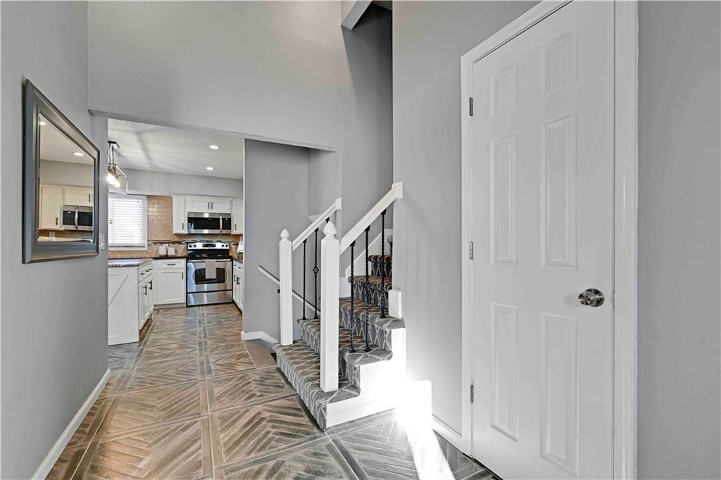 Welcome Home to Olathe! NEW Carpet, NEW Paint, NEW Concrete Driveway and Steps to front door! Low Maintenence Vinyl Siding and brick. As you enter thru the foyer with tall ceilings & custom 12x12 luxury tile, you have your spacious living room to your left with vaulted ceilings. The kitchen has the continued custom tiled flooring throughout, center island with seating, S/S Appliances, ample counter space, an eat-in dining space, window view out to the beautiful back yard. The slider door leads out to the multi-tiered decking system with built-in seating, a large back yard surrounded with privacy fencing. Your Primary En-Suite is on the 2nd level with a walk-in closet. Bedrooms #2 & #3 are also on the 2nd floor, next to the Full Bathroom #2. Headed down the designer carpeted stairs to the Recreation Room/Den area boasts a fireplace, custom built-in shelving, newer carpet, 1/2 bathroom, additional closet and slider door for an additional door to the back yard walkout! Next to the garage interior entry door there is a custom boot bench and tiled flooring. Down to the additional Lower Level you have more space for a flex room for additional office or workout room. Next to the laundry room there is a spot for additional fridge and storage space. Lower Level Fridge Stays with home. Kitchen updated 2021.. New Deck 2020. All in the coveted Stratford Estate Community & Olathe Schools! Close proximity to Shopping, Dining, Garmin, Olathe Medical Center, 1200+ Acre Heritage Park with Dog Park, Trails, Sports Fields, Lake and much more! *Sq Ft & Taxes are estimated. Buyer or Buyer agent to verify. Welcome to your beautiful & updated home! This is the ONE!
