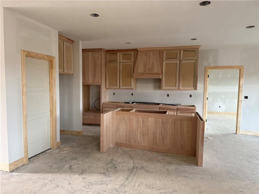 Beautiful new construction by Evolution Homes LLC situated on 5.47 scenic acres. This home offers main-level living at its finest with exceptional curb appeal, featuring black windows, attractive stone accents, and a side-entry garage. Step inside to vaulted ceilings with a striking beam and a spacious living room highlighted by a wall of windows and an electric fireplace. The open layout flows into a large dining area, perfect for gatherings. The kitchen is a showstopper with custom cabinetry, granite countertops, stainless steel appliances, a custom hood, and a huge walk-in pantry. The primary suite is generously sized and features a tiled shower with dual shower heads, a relaxing soaker tub, double vanities, and a walk-in closet. Two additional bedrooms and a full bathroom complete the home. Enjoy peaceful country living just outside the city while still being close to everything. Relax on the massive covered back patio—perfect for morning coffee or unwinding after a long day—while taking in the beauty of your 5.47 acres. Owner/Agent. Home to be completed by 1st week of February. Currently in paint stage.
