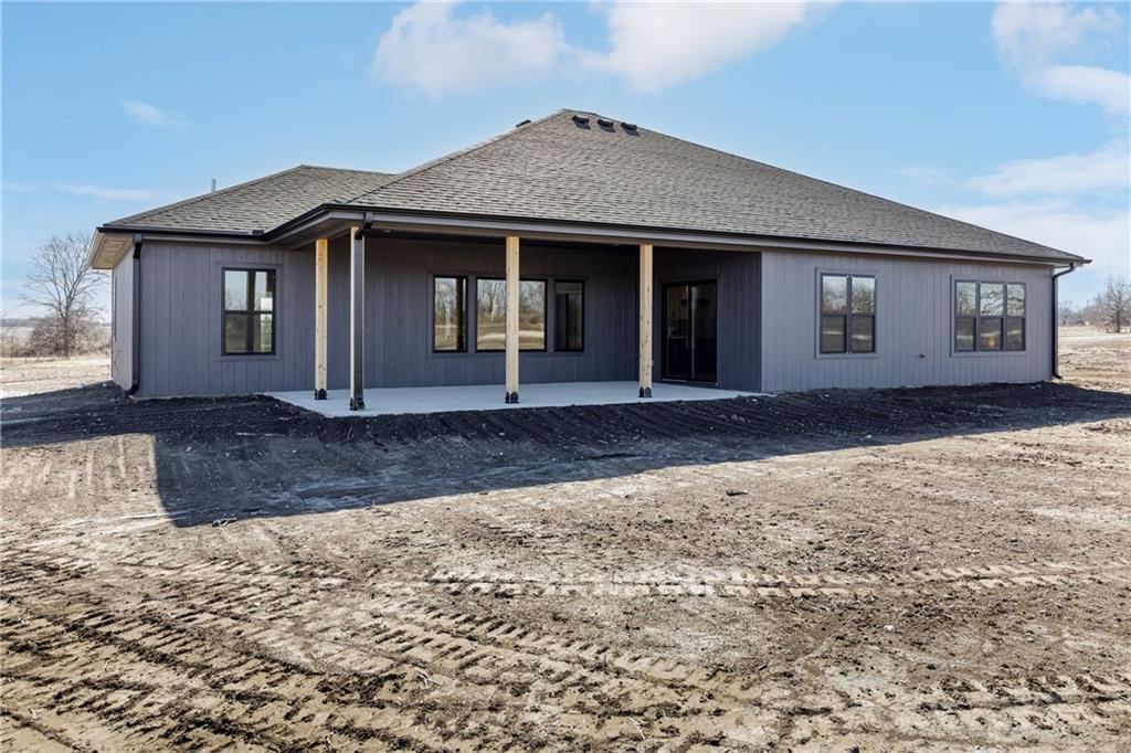 New Price! Come get your piece of country living just outside city limits! Beautiful new construction by Evolution Homes LLC situated on 5.47 scenic acres. This home offers main-level living at its finest with exceptional curb appeal, featuring black windows, attractive stone accents, and a side-entry garage. Step inside to vaulted ceilings with a striking beam and a spacious living room highlighted by a wall of windows and an electric fireplace. The open layout flows into a large dining area, perfect for gatherings. The kitchen is a showstopper with custom cabinetry, marble countertops, stainless steel appliances, a custom hood, and a huge walk-in pantry. The primary suite is generously sized and features a tiled shower with dual shower heads, a relaxing soaker tub, double vanities, and a walk-in closet. Two additional bedrooms and a full bathroom complete the home. Enjoy peaceful country living just outside the city while still being close to everything. Relax on the massive covered back patio—perfect for morning coffee or unwinding after a long day—while taking in the beauty of your 5.47 acres. Owner/Agent.