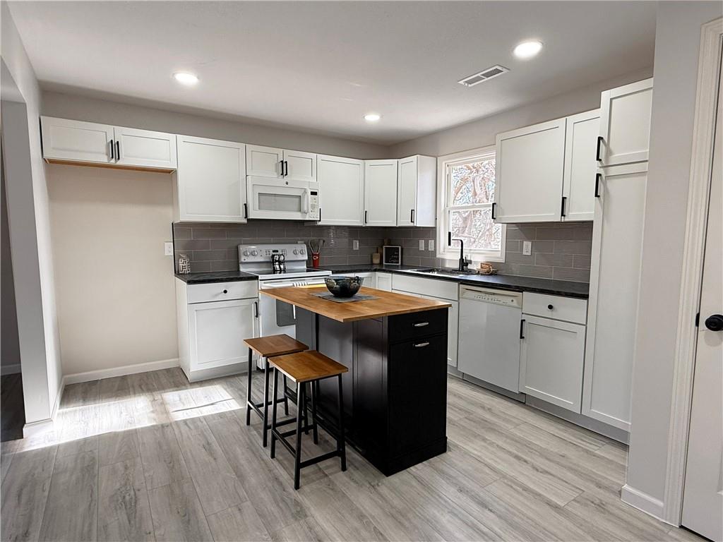 Completely renovated and move-in ready, this stunning 2-bedroom, 1-bath home blends modern finishes with functional design. The open-concept layout seamlessly connects the living room and kitchen, creating a bright and inviting space ideal for everyday living and entertaining. Enjoy new luxury vinyl flooring throughout, complemented by brand-new carpet in the bedrooms and fresh interior paint. The home has been fully updated with brand-new electrical, new windows, and a new roof for added peace of mind. The beautifully updated kitchen features new cabinetry and striking black leathered granite countertops, offering both style and durability. A brand-new stacked washer and dryer are conveniently included. Outdoor living is a standout with a large covered front porch, plus a spacious backyard with patio, perfect for relaxing, entertaining, or future expansion. This thoughtfully renovated home offers modern comfort, quality upgrades, and excellent curb appeal. Don’t miss this turnkey opportunity!
