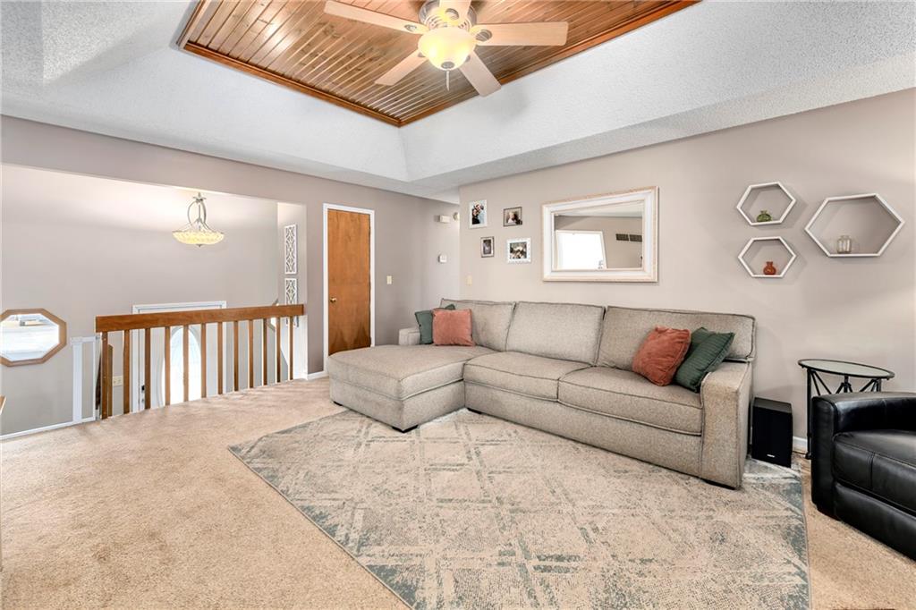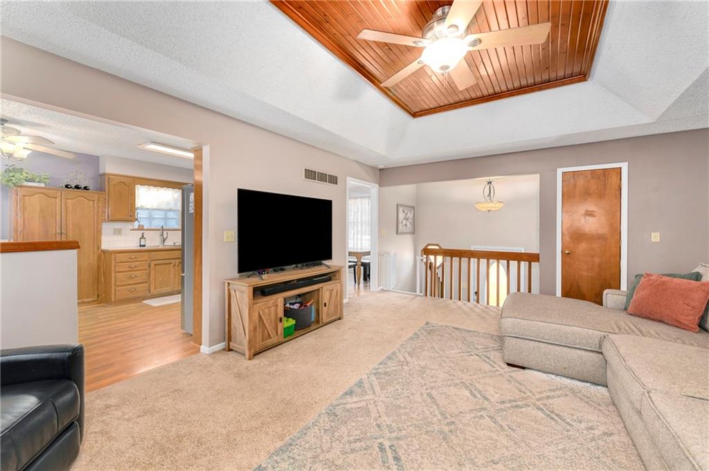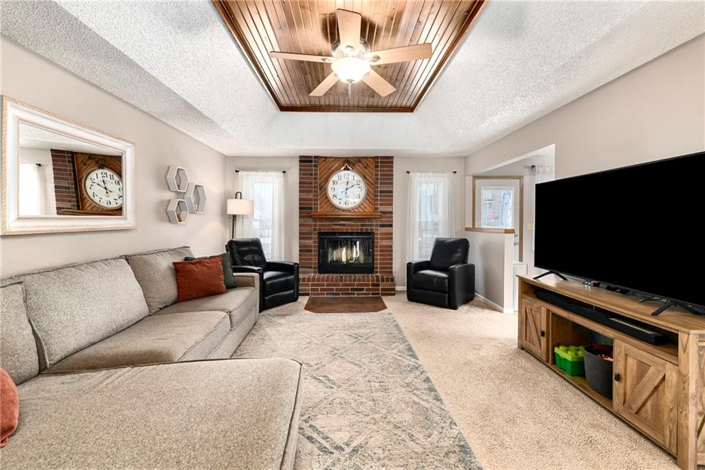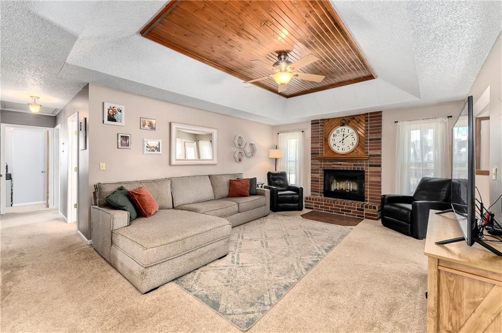Fantastic Opportunity! Great 3 bedroom/3 bathroom home with many recent updates. 2025 - roof, garage doors, primary bathroom countertop (Granite), & new flooring entry way & fireplace / 2024 - shed & mudjacking front stairs / 2023 - appliances (kitchen), hall bath countertops (Quartz), tile, toilet, refinish tub, & plumbing fixtures, & landscaping / 2020/2021 - 5 windows replaced / 2019 - gutters & gutters guards, washer & dryer. The home offers a large great room with beautiful brick fireplace and wood tray ceiling. There is a formal dining off the kitchen that could be used as an office. The laundry is conveniently located in the hall bathroom. The current finished basement is being used as a 4th bedroom with walk-in closet and full bath. Large fenced backyard with deck (16.4x15.4), patio (15x13.4), firepit, & shed (12x8) for storage. Quick access to hwy, shopping, restaurants, and more. It is also within walking distance of elementary & middle schools.