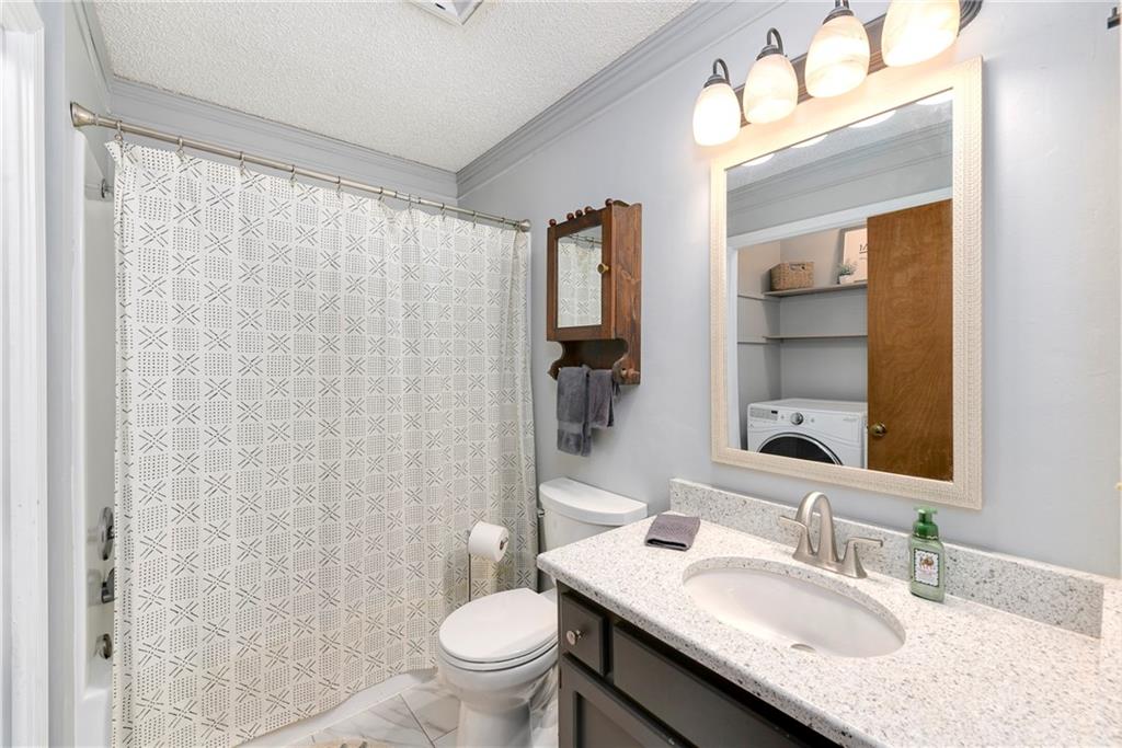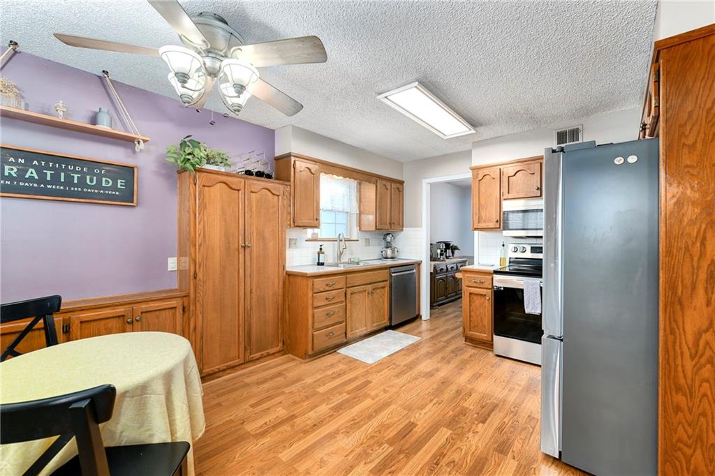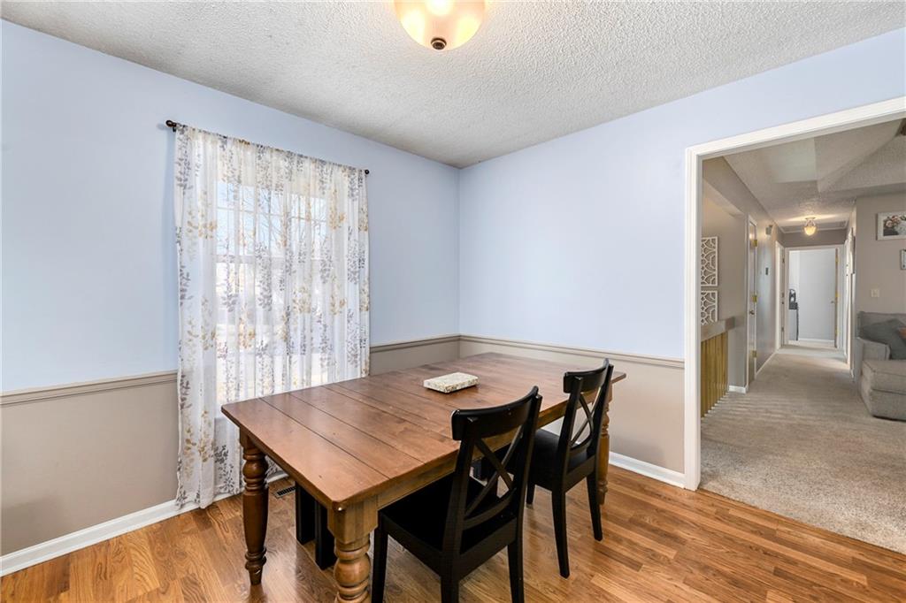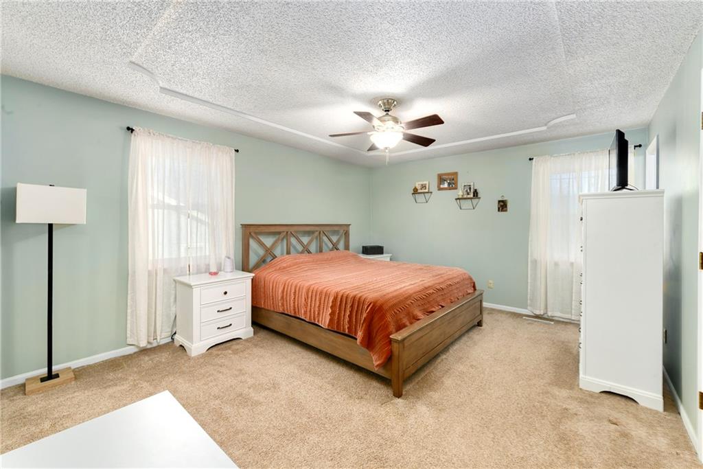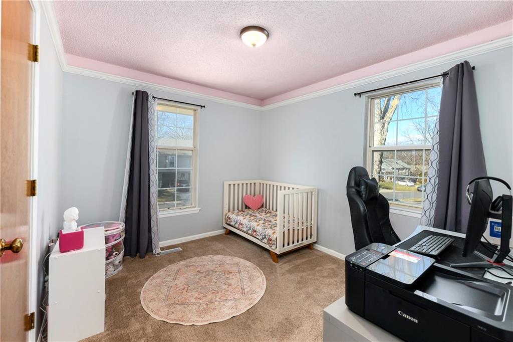 Fantastic Opportunity! Great 3 bedroom/3 bathroom home with many recent updates. 2025 - roof, garage doors, primary bathroom countertop (Granite), & new flooring entry way & fireplace / 2024 - shed & mudjacking front stairs / 2023 - appliances (kitchen), hall bath countertops (Quartz), tile, toilet, refinish tub, & plumbing fixtures, & landscaping / 2020/2021 - 5 windows replaced / 2019 - gutters & gutters guards, washer & dryer. The home offers a large great room with beautiful brick fireplace and wood tray ceiling. There is a formal dining off the kitchen that could be used as an office. The laundry is conveniently located in the hall bathroom. The current finished basement is being used as a 4th bedroom with walk-in closet and full bath. Large fenced backyard with deck (16.4x15.4), patio (15x13.4), firepit, & shed (12x8) for storage. Quick access to hwy, shopping, restaurants, and more. It is also within walking distance of elementary & middle schools.