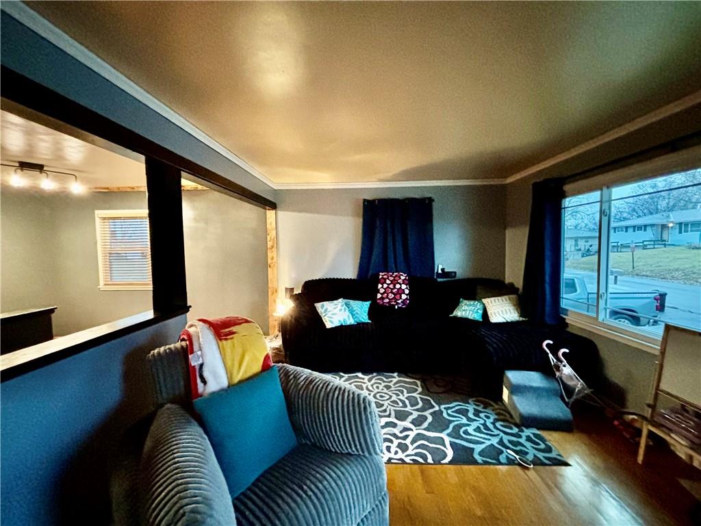 Well taken care of home in Hurst Hills-Andrew County, Country Club ! Ranch with 3 bedrooms, 2 full baths and finished recreation room! Pretty colors exterior and interior! Vinyl siding, deck, fenced in back yard and extra parking pad! Nice kitchen with dining area! Large picture window! Finished Lower Level ! Nice main floor laundry with built in cabinets! French door to hallway bath ! Nice wood cabinets with pretty tiled back splash ! Large Picture window in Living room! Hardwoods ,luxury plank & Luxury vinyl floors through out entire home ! Ceiling fan in every room ! Stainless steel refrigerator and microwave do not stay! All blind stay with house ! Curtains and drapes do not stay !Close to North Shops and Restaurants !