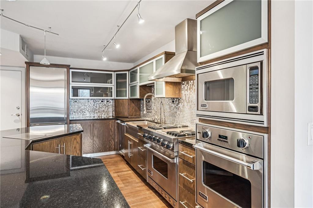 Don't miss this rare double unit with 3 bedrooms, 2 bath condo in the sought after Winston Churchill Building with quick convenient walkable access to the Plaza. This inviting open floor plan has lots of natural light with its expanse of windows. This condo features an Oversized Master bedroom. There are hardwood floors throughout the living room, dining room, kitchen and hallway. True chef's kitchen with a commercial style range and ovens, granite. Steam shower, dry sauna, and double sink vanity in primary bath. Beautiful flooring and lighting. Primary Bedroom with Walk in closet + laundry. The condo comes with two assigned parking garage spaces. and two storage units in basement. Amenities include a rooftop party room for entertaining and outdoor patio with fire pit and grill, and an exercise room on the first floor. Pet friendly. HOA dues that include heating, water, and trash pickup. Owner only pays electricity for their unit. Contemporary Mid-Century building. This is a great value and opportunity to live on the Plaza with great amenities, amazing views and low HOA fees. Selling in "As Is" condition.