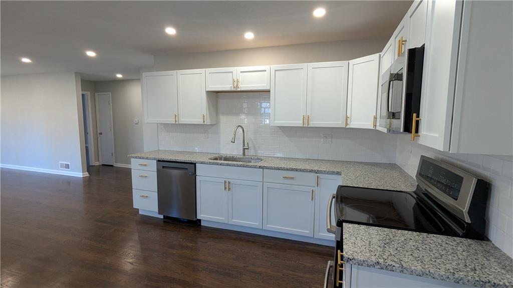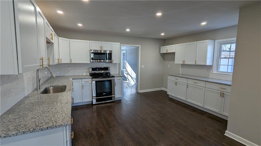 Welcome to your future home! This beauty has everything you could possibly look for in a house; elegance, updates, space, and privacy. This home features large front porch and three bedrooms and two full bathrooms. The layout is open and you would love the living space and the totally updated kitchen overlooking the living room and dining area. The kitchen is a master piece with granite, new appliances, and great craftsmanship. All bedrooms are in the first floor. Master bedroom has its own full bathroom along with a deck to overview the beautiful and green space in the back. LL is open and ready for you to finish the way you like. Laundry is in the LL. There are lots of updates in every corner of the house, inside and out. Updates include new roof, new flooring, light fixtures, paint inside and out, new Kitchen, granite counter top, back splash, brand new bathrooms, new windows and much more. The lot is huge and offers serenity and privacy; it is almost ONE acre of green land. Location is excellent and super close to downtown, Shops highways, and more!