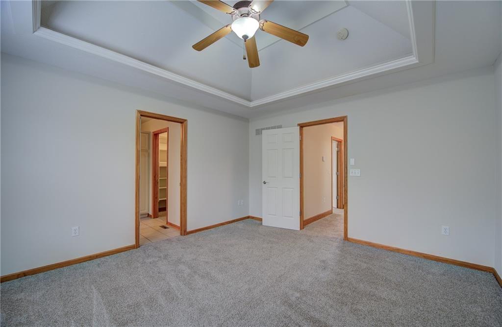 Meticulously maintained and move in ready! True ranch with 3 bedrooms on the main level in sought-after Drumm Farm Villas! NEW furnace and AC! Fresh interior paint and new carpet throughout! Enjoy the largest fully fenced yard in the neighborhood! Kitchen offers double oven, stainless appliances, walk in pantry and breakfast bar. Dining area opens to the Great room with gas fireplace and access to the deck overlooking the fenced backyard with inground sprinkler system-perfect for relaxing and entertaining! Primary bedroom suite includes a walk in closet and private bath with double vanity, jetted tub and shower. Two additional bedrooms, 2nd full bath with tub/shower and laundry are also on the main level. Finished, walk out lower level includes spacious family room with wall of windows, 3rd full bath and ample storage! Located in a maintenance-provided community, HOA dues cover lawn care, snow removal, opening/closing of sprinkler system and trash service—offering low-maintenance living at its finest. The Drumm Farms public golf course is also just down the road!