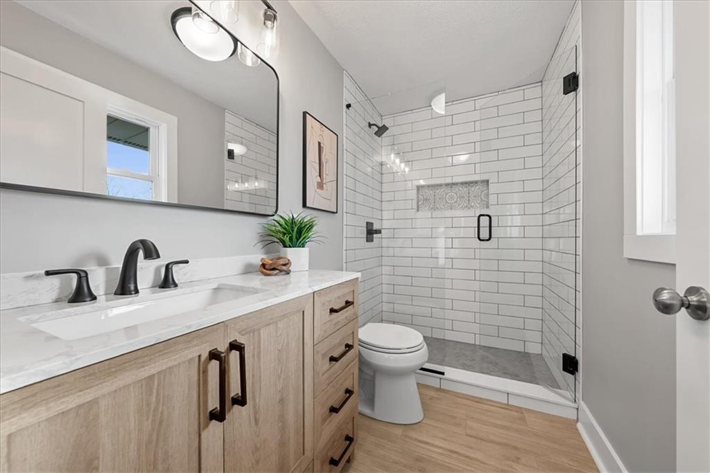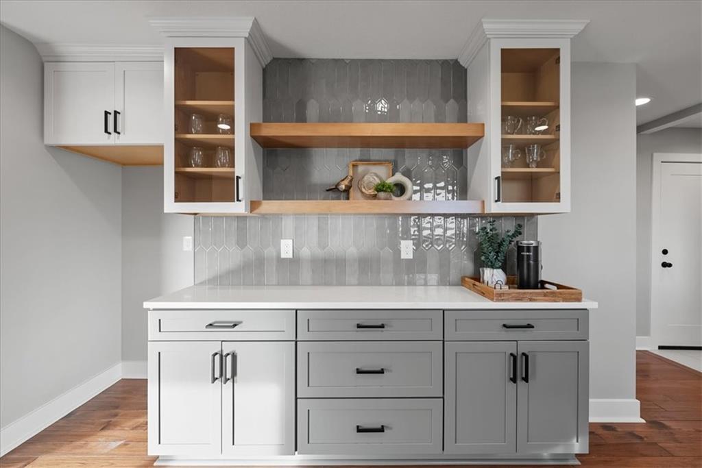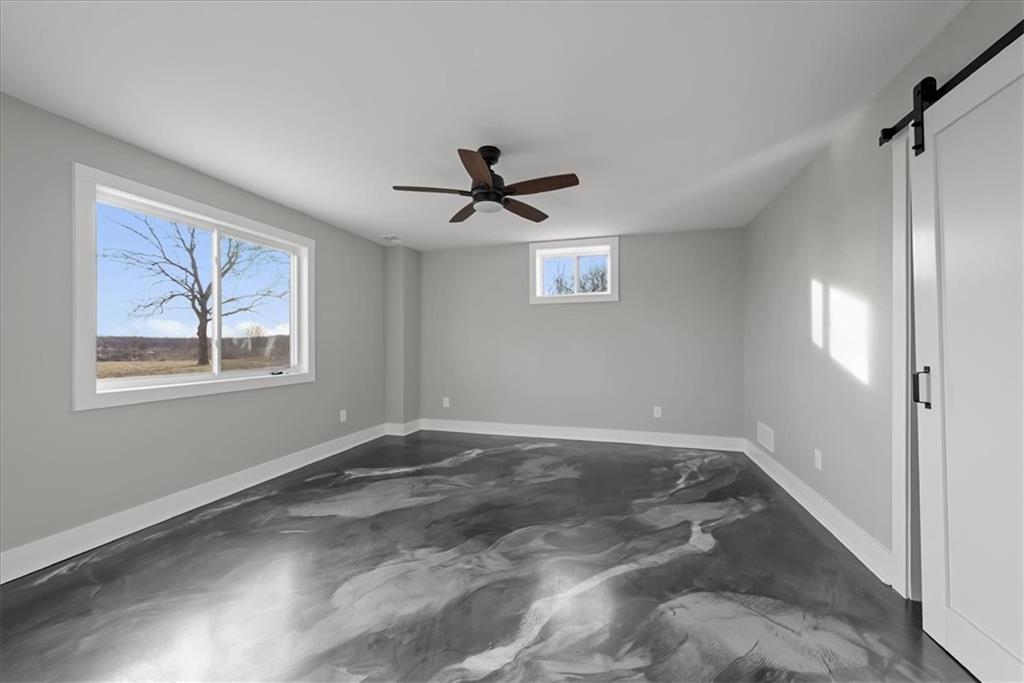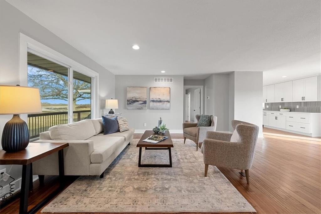 A rare opportunity for acreage living, this fully remodeled 3,017 sq ft ranch with a finished walkout basement is set on 10 acres. The home offers 4 bedrooms, 3.5 baths, and a flexible main-level office or fourth bedroom, thoughtfully updated to blend modern comfort with timeless ranch design. At the heart of the home is an all-new kitchen featuring abundant cabinetry, quartz countertop surfaces, and brand-new appliances—designed for both everyday living and entertaining. New bathrooms, all new windows, doors, flooring, HVAC System, Electrical Box and wiring, Siding, Exterior and Interior paint and all-new fixtures throughout reflect the home’s comprehensive renovation and elevated finish. Everyday functionality shines with an expansive mudroom and main-level laundry, along with a walk-in pantry complete with a convenient grocery door to the garage. The finished walkout basement extends the home’s versatility, offering a wet bar, professional epoxy flooring, and a striking glass-and-tile walk-in shower—ideal for hosting, relaxation, or extended living. The 2.5-car side-entry garage has new epoxy floors, providing durability with a polished look. Outdoor living is enhanced by a large new deck and expansive concrete patio overlooking the peaceful, open acreage. Additional amenities include a 40x60 outbuilding with electricity and a convenient lean-to, perfect for equipment, animals or additional storage. Paved road access—no gravel. The buyer receives first right to purchase the adjoining 8 acres, offering potential for added privacy or future expansion. NO HOA. No fencing. Just space, freedom, and the opportunity to make it your own.