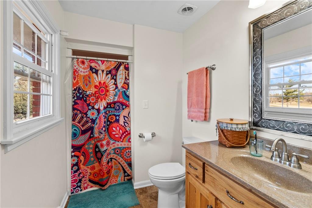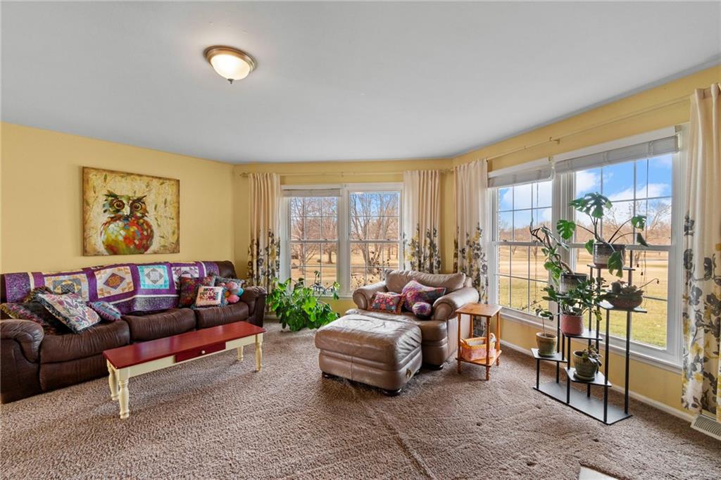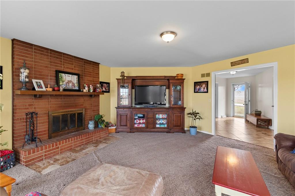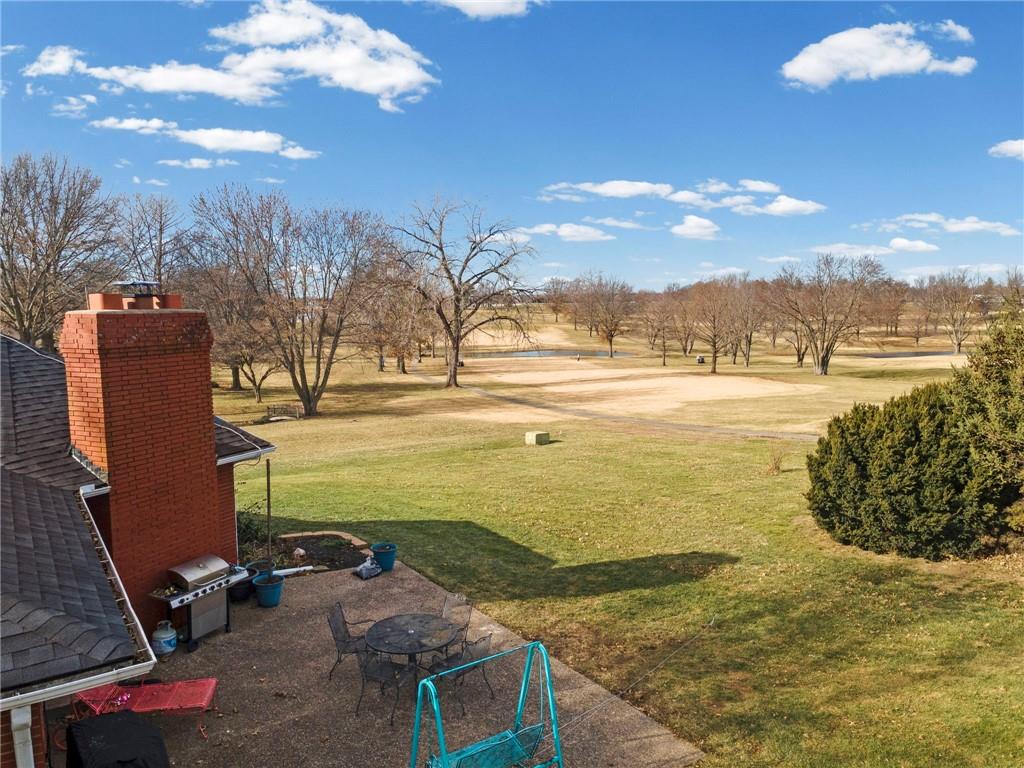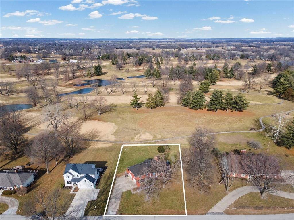 Elegant all-brick ranch/raised ranch gracefully positioned along Shirkey Golf Course, offering breathtaking panoramic views. The beautifully updated kitchen showcases rich hickory cabinetry, a center island, and a spacious pantry—designed for both function and style. Adjacent to the kitchen are a formal dining room and a conveniently located laundry room. The home features three bedrooms and two full bathrooms, each enhanced with newer hickory vanities. The inviting living room is highlighted by a fireplace and expansive views of the golf course, creating a warm yet sophisticated atmosphere. Step onto the covered front porch to enjoy serene mornings and stunning sunsets, an ideal setting for relaxation and refined outdoor living.