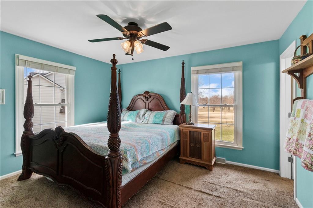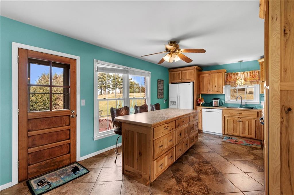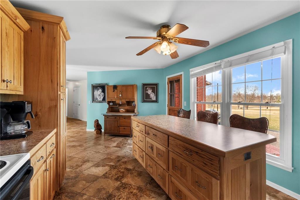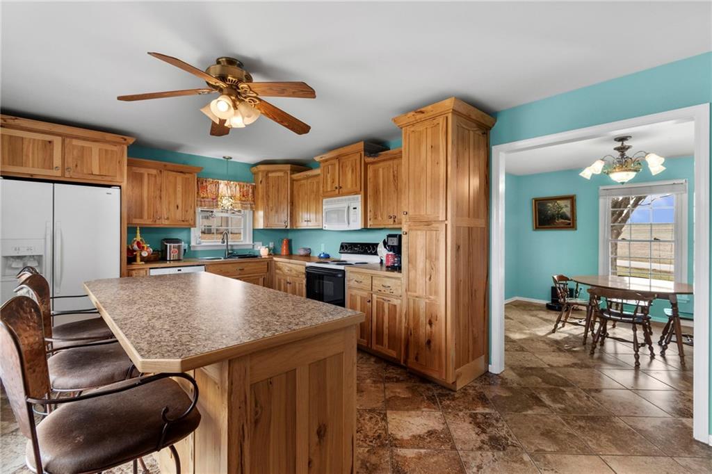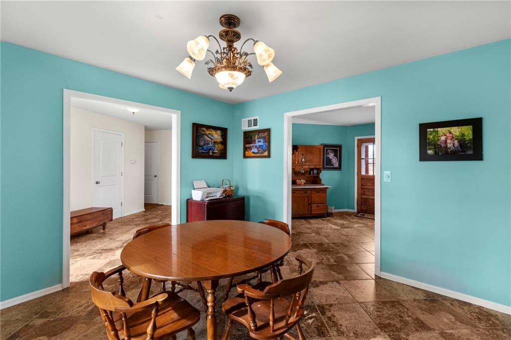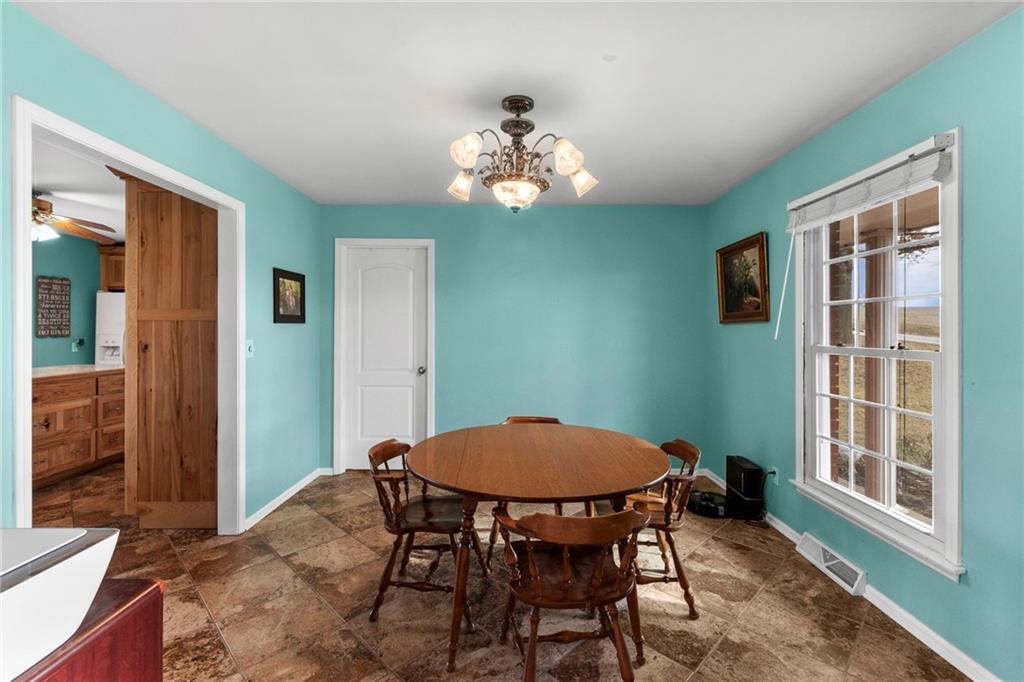 Elegant all-brick ranch/raised ranch gracefully positioned along Shirkey Golf Course, offering breathtaking panoramic views. The beautifully updated kitchen showcases rich hickory cabinetry, a center island, and a spacious pantry—designed for both function and style. Adjacent to the kitchen are a formal dining room and a conveniently located laundry room. The home features three bedrooms and two full bathrooms, each enhanced with newer hickory vanities. The inviting living room is highlighted by a fireplace and expansive views of the golf course, creating a warm yet sophisticated atmosphere. Step onto the covered front porch to enjoy serene mornings and stunning sunsets, an ideal setting for relaxation and refined outdoor living.