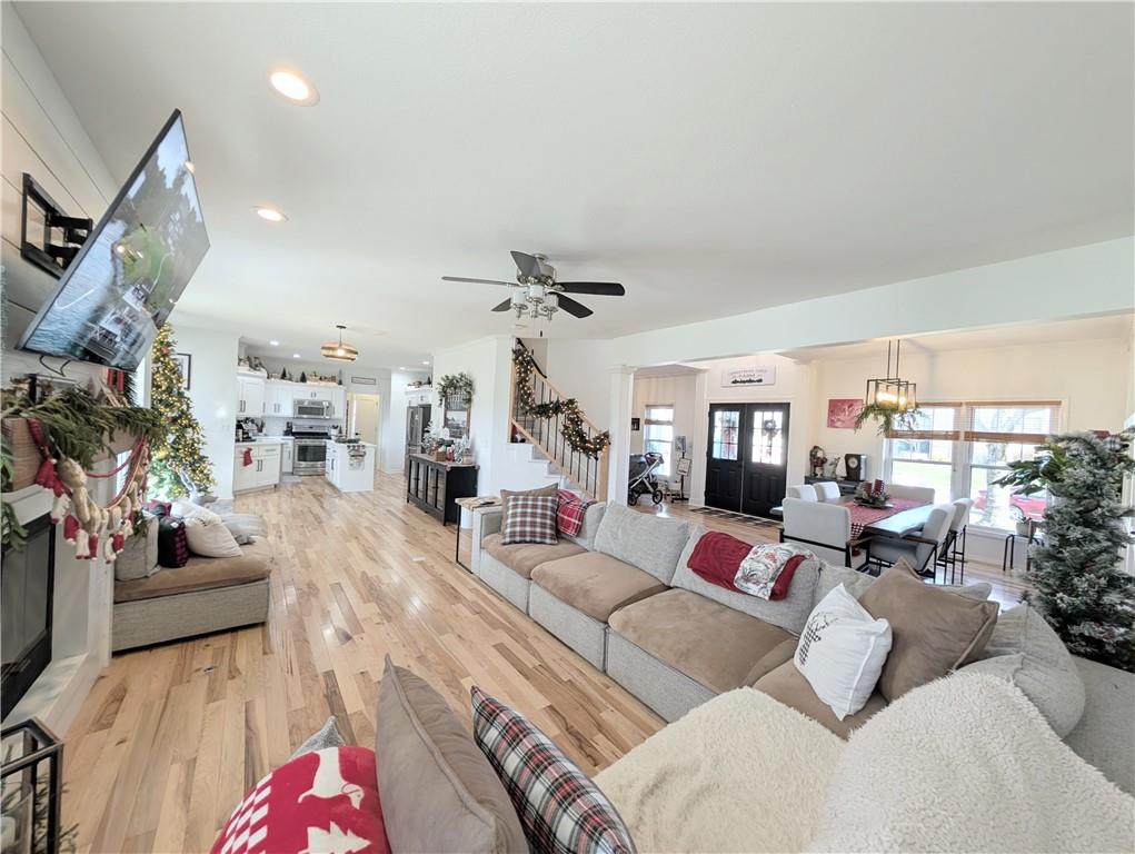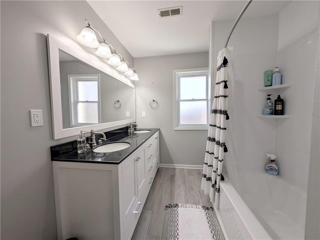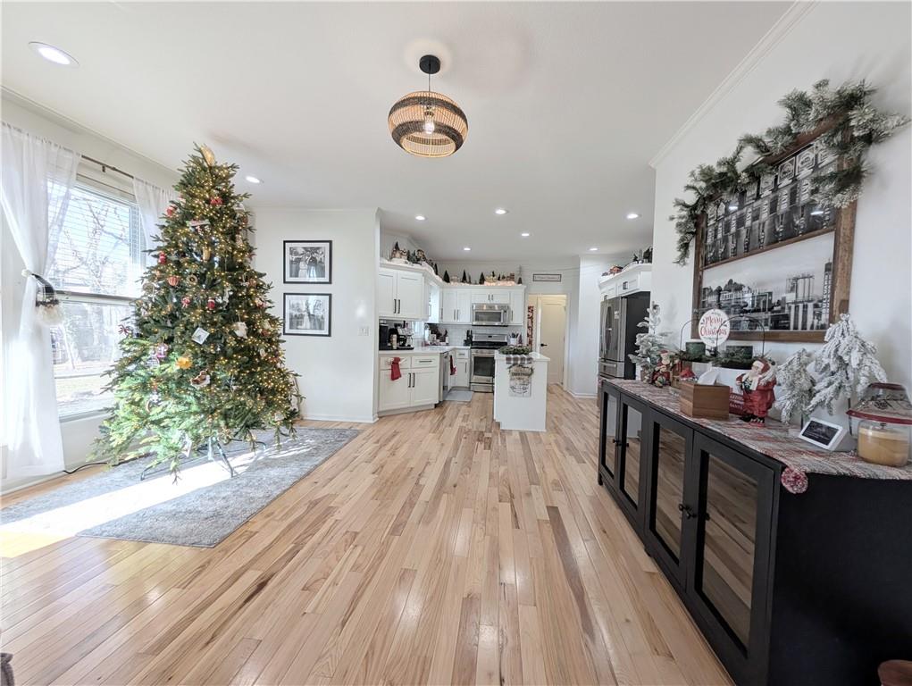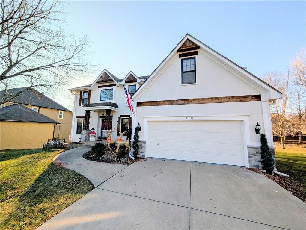 Experience a perfect blend of modern sophistication and neighborhood charm in this meticulously updated two-story located in the heart of Lee’s Summit’s highly sought-after Longview Farms neighborhood. The main level with mixed neutral toned plank hardwood floors throughout, has been thoughtfully reimagined into an open-concept sanctuary, where natural light fills the living spaces and flows seamlessly into a gourmet kitchen outfitted with custom cabinetry, sleek countertops, and designer finishes. High-end architectural details abound throughout the home. Beyond the aesthetic transformations, this home offers total peace of mind with major mechanical systems and roof all replaced within the last six years: including Furnace & AC & tankless water heater. The outdoor living space is a private retreat, featuring a low-maintenance composite deck and a charming covered porch that overlook a serene backyard complete with a picturesque dry riverbed boarding the paved neighborhood trail. The finished WALKOUT basement is so flexible, with large open space, tons of light, stained concrete floors, complete with a FULL bath, a walk-up wet bar, and generous storage. This is a rare opportunity to own a turn-key, masterfully refreshed home that balances style, function, and a premier location. **Basement bath shower roughed-in & ready to be finished. Tile already purchased and ready to instal. Bathroom door shipping delay, ETA 1/18.