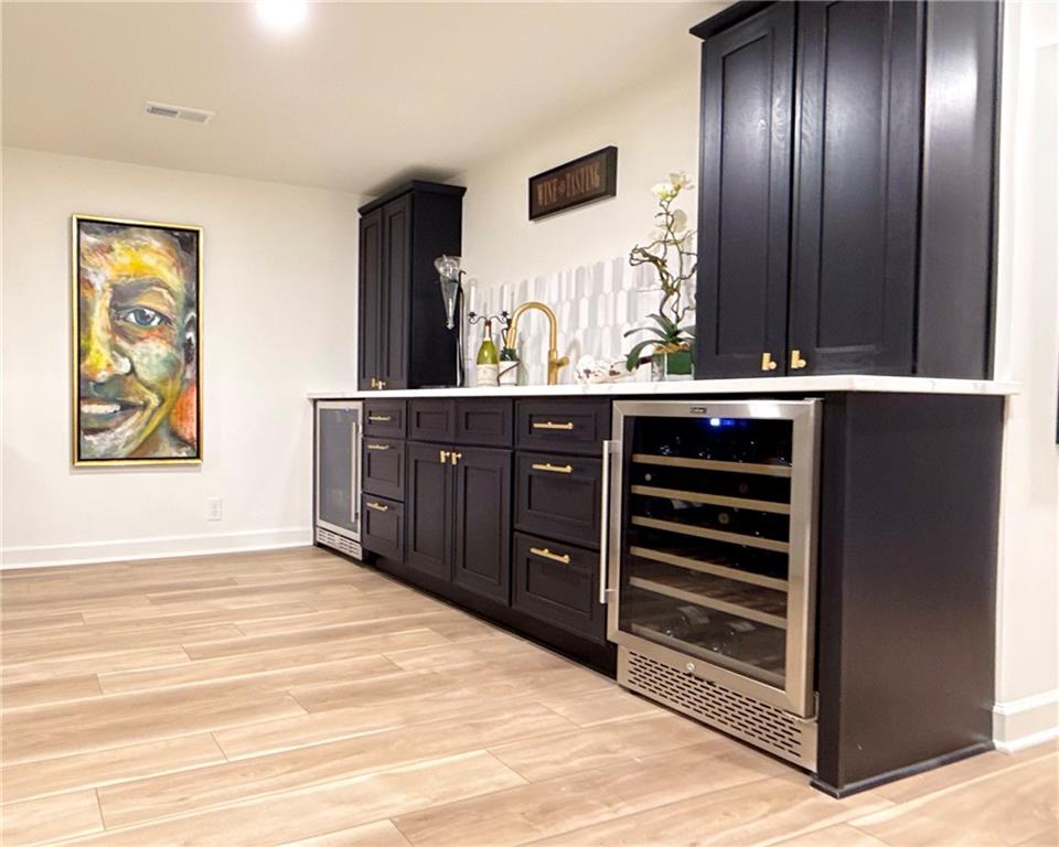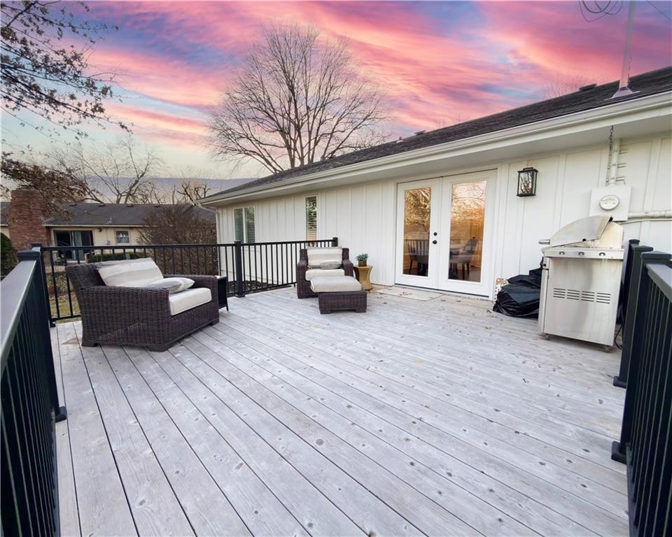 Welcome to this thoughtfully updated ranch in the highly sought-after Leawood Estates, ideally located on one of the best streets in the neighborhood. The home has been fully renovated with a focus on clean design, quality finishes, and everyday functionality. The remodeled kitchen features custom cabinetry, premium appliances, and sleek surfaces suited for both daily living and entertaining. A newly added primary suite offers a comfortable retreat with a well-appointed bath including a soaking tub, oversized walk-in shower, and modern finishes, along with a spacious walk-in closet complete with a dedicated washer and dryer. All bathrooms have been updated with a contemporary aesthetic and spa-inspired details. The finished basement provides additional living space and includes a bar with a wine fridge and beverage center, ideal for casual gatherings. Vaulted ceilings enhance the open feel of the main living areas, while extensive infrastructure updates add long-term value and peace of mind. Outside, refreshed landscaping complements the expansive lot and creates a welcoming outdoor setting. This move-in-ready home combines modern updates with a desirable Leawood Estates location close to award-winning Shawnee Mission schools, shopping, and dining.
