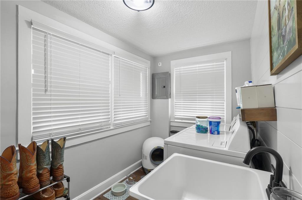 Stop by and see 103 East Shawnee Today! This beautifully renovated 2-bedroom, 1 bathroom home offers over 1,000 square feet of thoughtfully designed living space in one of Paola's desirable locations, just a short walk to the iconic Paola Square. Move-in ready with fully furnished appliances including fridge, microwave, dishwasher, stove, and washer / dryer! Inside, you'll love the open-concept layout paired with tasteful, modern design choices throughout. The renovation included all the mechanicals (electric, HVAC, plumbing), providing peace of mind and efficiency for years to come. The kitchen is both charming and functional, featuring ample storage and convenient laundry location, just off the kitchen. A visually striking fireplace anchors the main living space, adding warmth and character. Outside, enjoy a large backyard with a detached garage, offering extra storage and flexibility. Super cute, move-in ready, and an amazing location! This home is perfect for buyers looking for charm, updates, and walkability in the heart of Paola, KS.