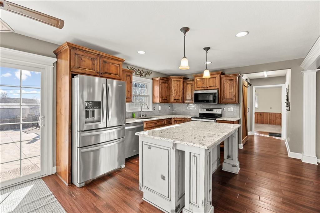This Brick Ranch Has 5 Bedrooms, 2 of Which Are Non-Conforming in Basement. 4 Full Remodeled Bathrooms, 3 on Main Floor and 1 in the Basement. New Electric HVAC Heatpump. Newer Anderson Windows. 4 Car Garage, 2 on Main Level (Epoxy Floor) and 2 in The Basement-- Boasts 3,778 Square Ft Of Finished Living Space. Gorgeous Kitchen with Granite Countertops, Stained Cabinets, Pantry, and Island. Kitchen is Open To The Living Room with Fireplace and an Abundance of Natural Light. Sliding Glass Door Opens Up to Your Spacious Back Patio and Fenced in Yard. The Main Floor also has Another Family Room and an Office. The Basement has The 4th Bathroom, 2 Non-conforming Bedrooms, a 2nd Living Room with Fireplace, and a 2nd Kitchen. In Short, Your WHOLE Family Should Fit Here!! Being Sold AS-IS.