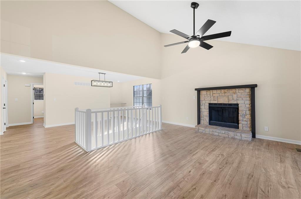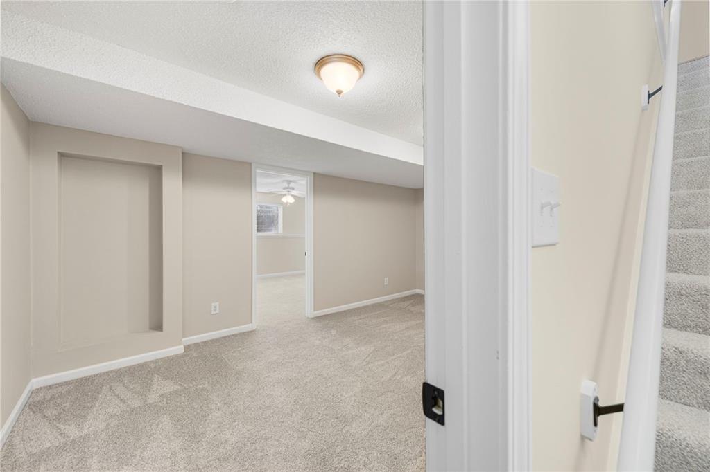 Amazing opportunity for one level living or an investment property! This home is located just minutes from the shops and restaurants at the Legends! Completely updated and move-in ready! This home features all new interior paint, updated hardware and lighting, granite countertops, and new appliances. Bathrooms have been refreshed with higher sinks, a taller toilet, and brand-new refinished tubs. New carpet and new luxury vinyl plank flooring run throughout the home. The basement offers a non-conforming 4th bedroom, a REC room, and a full bathroom with tile flooring and a walk-in closet, perfect for added living space. Additional highlights include a cozy wood-burning fireplace, a huge storage area and washer and dryer hookups in the unfinished space. Interior cabinets have been newly painted. Major exterior upgrades include a new roof and gutters installed in 2025. A rare find that's move in ready!