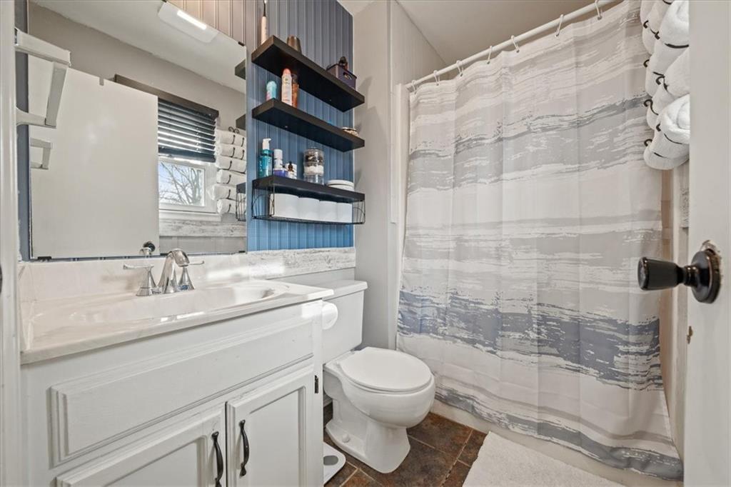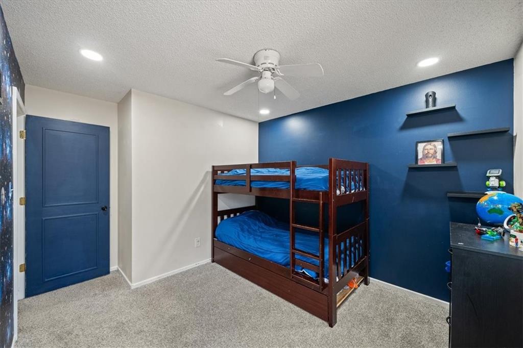 This beautifully maintained and updated raised ranch is conveniently located minutes from nearby parks, shopping, restaurants and highway access and showcases thoughtful updates throughout. Step inside to discover luxury vinyl plank flooring flowing seamlessly through the main level, complemented by fresh neutral paint and distinctive blue accent doors. The main living area impresses with abundant natural light, soaring vaulted ceilings with exposed beams, and an electric fireplace serving as an elegant focal point. The open-concept layout flows into a well-appointed kitchen featuring stainless steel appliances, generous cabinetry, and innovative Bluetooth-controlled recessed lighting—perfect for creating ambiance for any occasion. French doors open onto the rear deck, leading to an expansive quarter-acre lot with complete privacy fencing—ideal for pets and children to enjoy safely.The primary bedroom features dual closets and a private en-suite bathroom. Two additional bedrooms offer ceiling fans and recessed lighting with adjustable night-light settings. A full bathroom with tub/shower combination completes the main level.The lower level provides exceptional versatility with a recreation area featuring a built-in rock climbing wall and monkey bars. This level includes laundry facilities, a fourth non-conforming bedroom, and a third full bathroom—ideal for multi-generational living or potential rental income. The oversized two-car garage offers workshop space and convenient access. Recent improvements include a new roof, new HVAC system, new double-hung windows, enhanced insulation, updated privacy fencing, and new solar panels. Meticulously cared for and move-in ready!