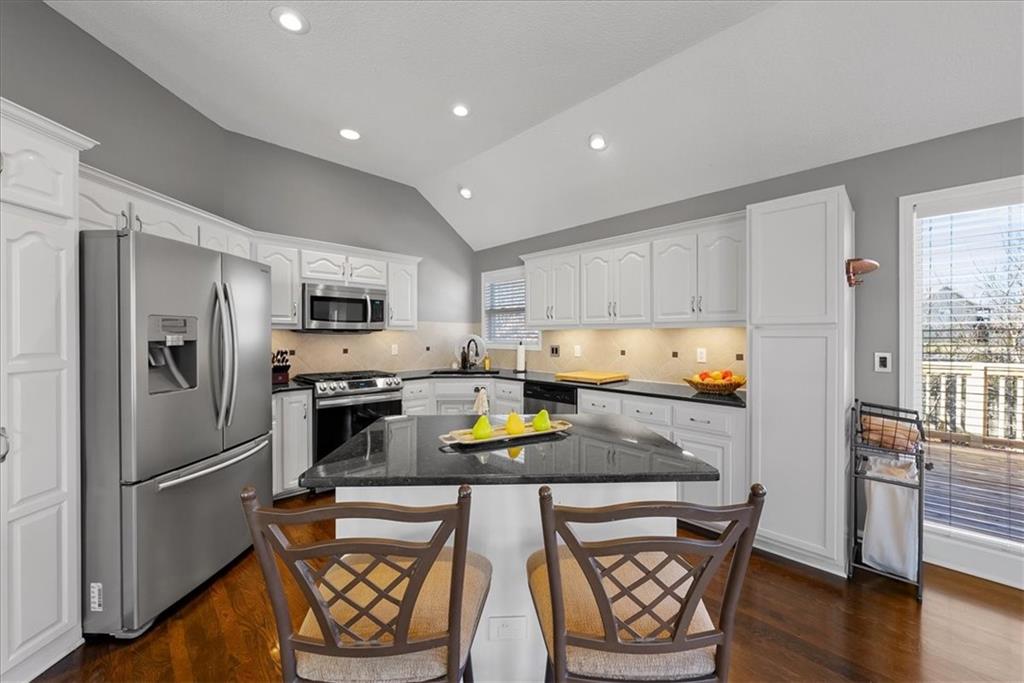Welcome to this beautifully maintained atrium split, offering the perfect blend of modern updates, generous space, and everyday comfort. Step into the vaulted main level, where abundant natural light fills the open kitchen, dining, and living areas—ideal for both everyday living and effortless entertaining. The updated kitchen features crisp white cabinetry, stainless steel appliances, ample counter space, and a central island that truly serves as the heart of the home. The spacious dining area seamlessly adjoins the kitchen, creating a welcoming space for gatherings large and small. The primary suite is a true retreat, highlighted by abundant natural light, a second fireplace, and an upgraded en-suite bath with a separate tub and shower, double vanity, and a generous walk-in closet. With multiple living areas, this home offers plenty of room to spread out. The walk-out lower level boasts a large recreation room with a third fireplace, access to a fourth bedroom and third full bath, and direct access to the patio—perfect for guests, extended family, or multi-generational living. Outdoors, enjoy a large backyard featuring a deck just off the kitchen and an open patio below the walk-out level, ideal for relaxing or entertaining. This home delivers the space, style, and thoughtful updates today’s buyers are looking for—don’t miss the opportunity to make it yours.