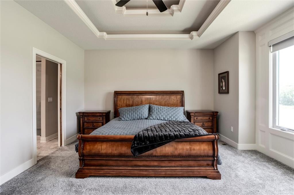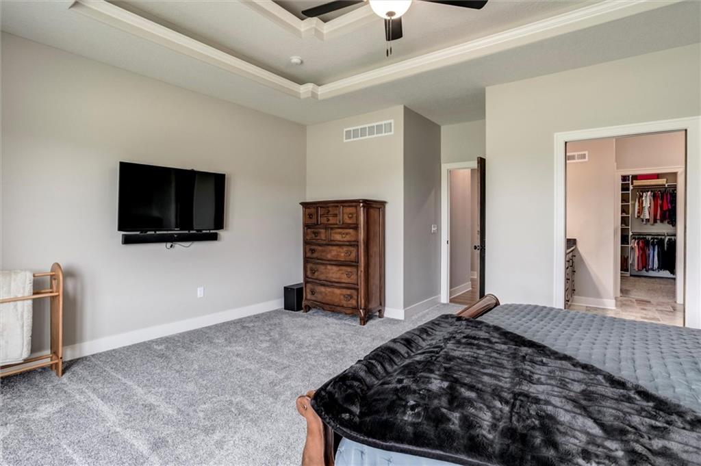 Nestled on a little over 3 acres in The Estates at The Ranch this home is a showstopper! Custom built with beautiful finishes. You will love the open floor plan, vaulted ceilings and box beams. Kitchen features upgraded appliances, a large walk-in pantry and soft close cabinets and drawers. Primary suite is oversized with an amazing closet and bath. 3 bedrooms on MAIN level for those that have small children or if multiple people need to be on the main level. Second smaller "secondary suite" includes a bath and walk in closet. Large lower level is stubbed for a wet bar/entertaining area with refrigerator. Two large storage areas. Storage area to the north could be a workshop. It is framed so you could put in double doors or a garage door for lawn equipment, ATV, boat or toys. The Covered deck, patio, fire pit and front porch make this home perfect for enjoying the outdoors. Country life close to the city. Minutes from 435, 169, I-29, 291 and 152. Home is very close to Smithville Lake and Paradise Point Golf Course. Enjoy the small town feel with all the amenities. In the highly rated Smithville School District. Buyer or buyer's agent to verify tax, sq ft and school district information.