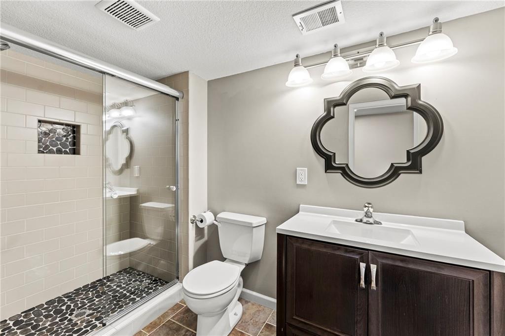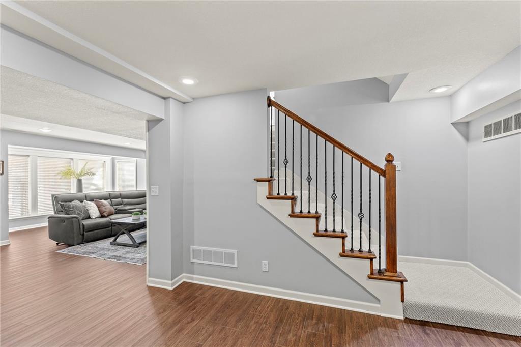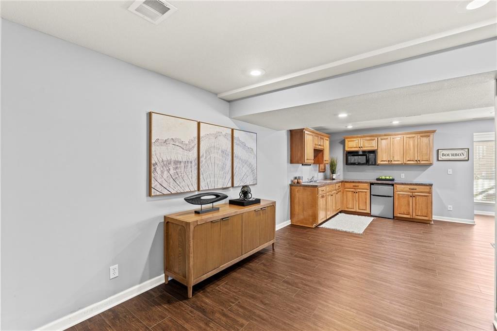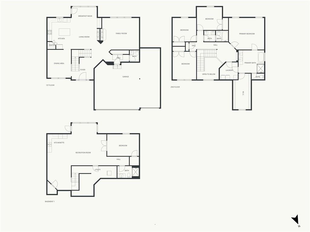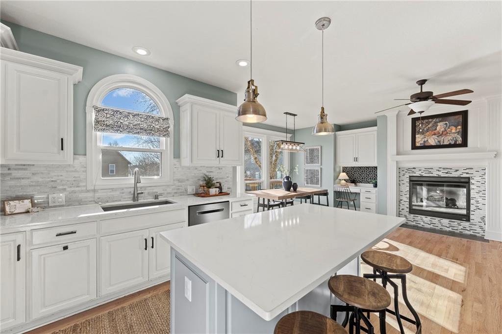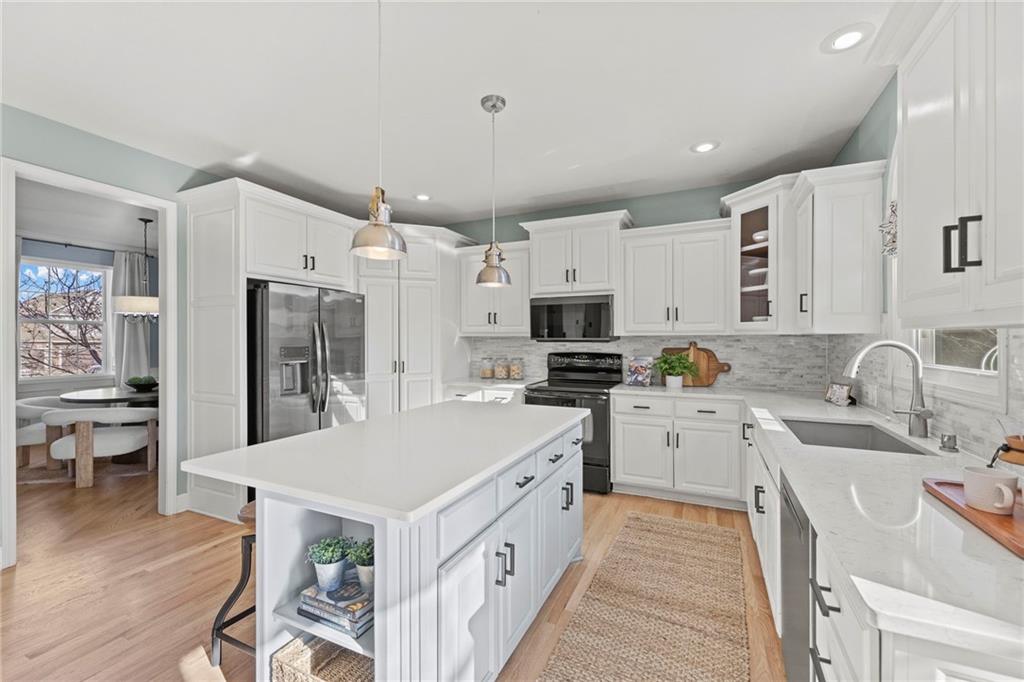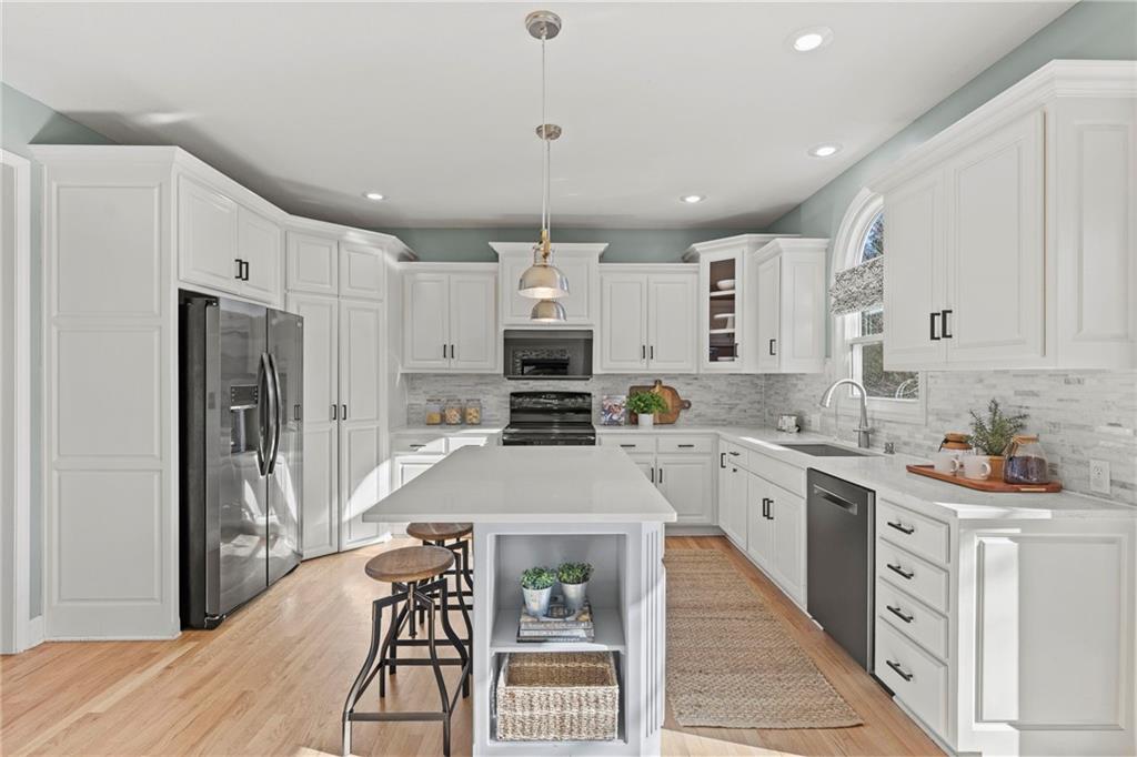 This magnificent custom home offers five bedrooms and a walk-out basement, showcasing sophisticated design and functionality. Updates including a new roof, windows, fixtures, and deck have enhanced the property's allure. The main floor features natural finish hardwood flooring throughout, a formal dining area, a large living room, and a hearth area that opens into a spacious kitchen. The kitchen is equipped with a pantry, a large island, black stainless steel appliances, and generous counter space. Upstairs, the layout includes an expansive primary bedroom, three additional bedrooms, and laundry facilities. The primary bedroom adjoins a luxurious en-suite bathroom with a soaking tub, large shower, and a vast 8 x 17 walk-in closet. The basement includes a kitchenette with a mini fridge, living area, a fifth bedroom, and a spacious full bathroom, making this property ideal.