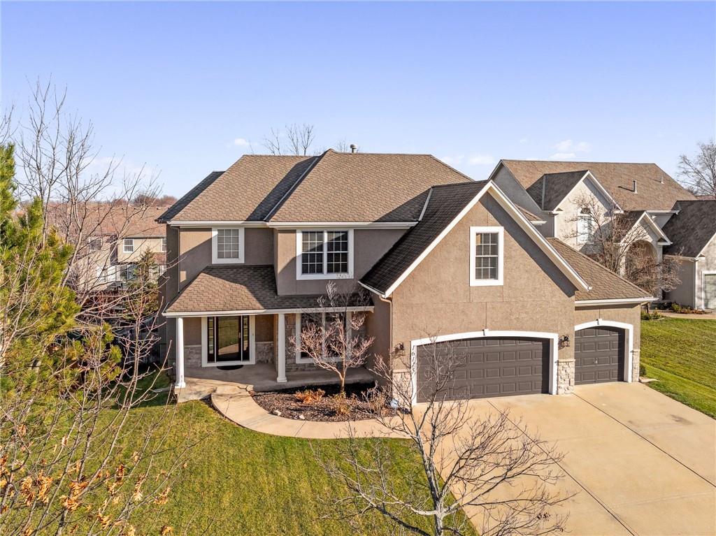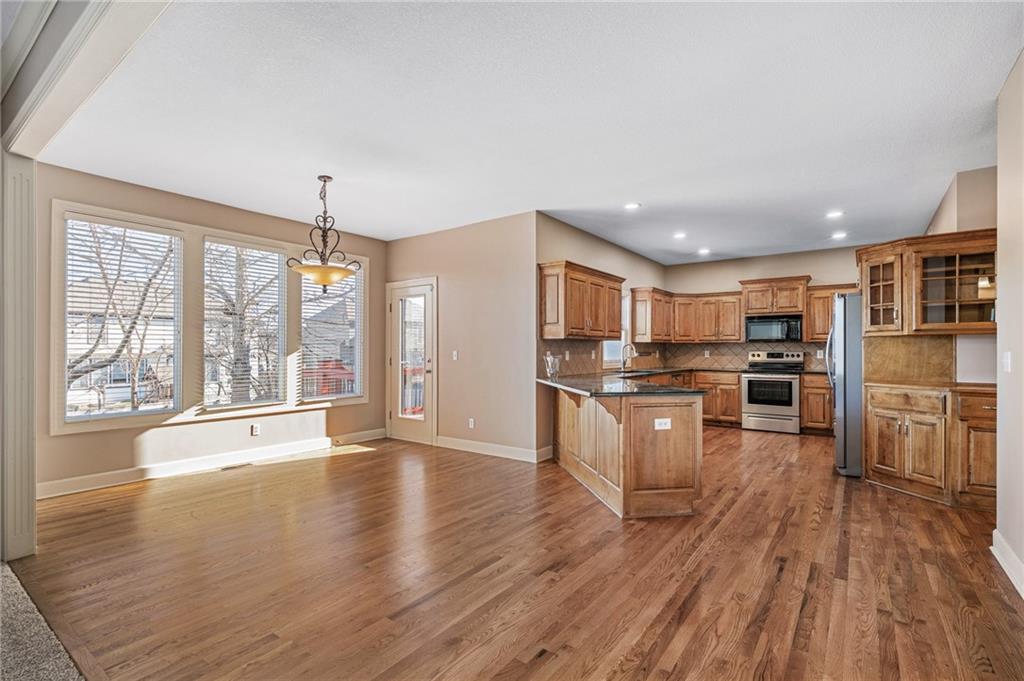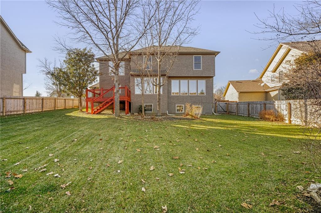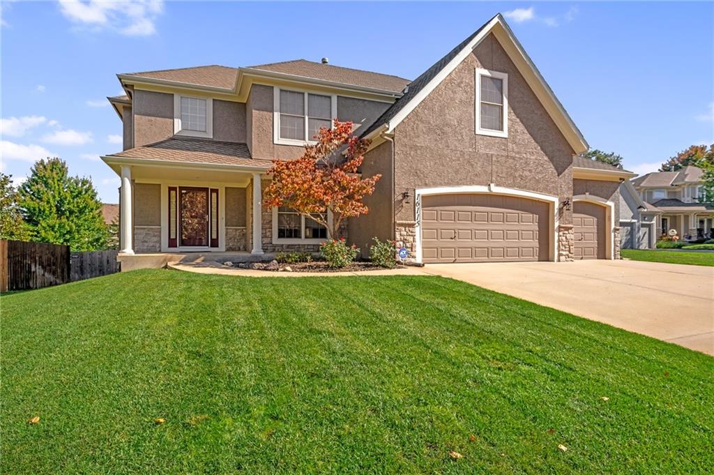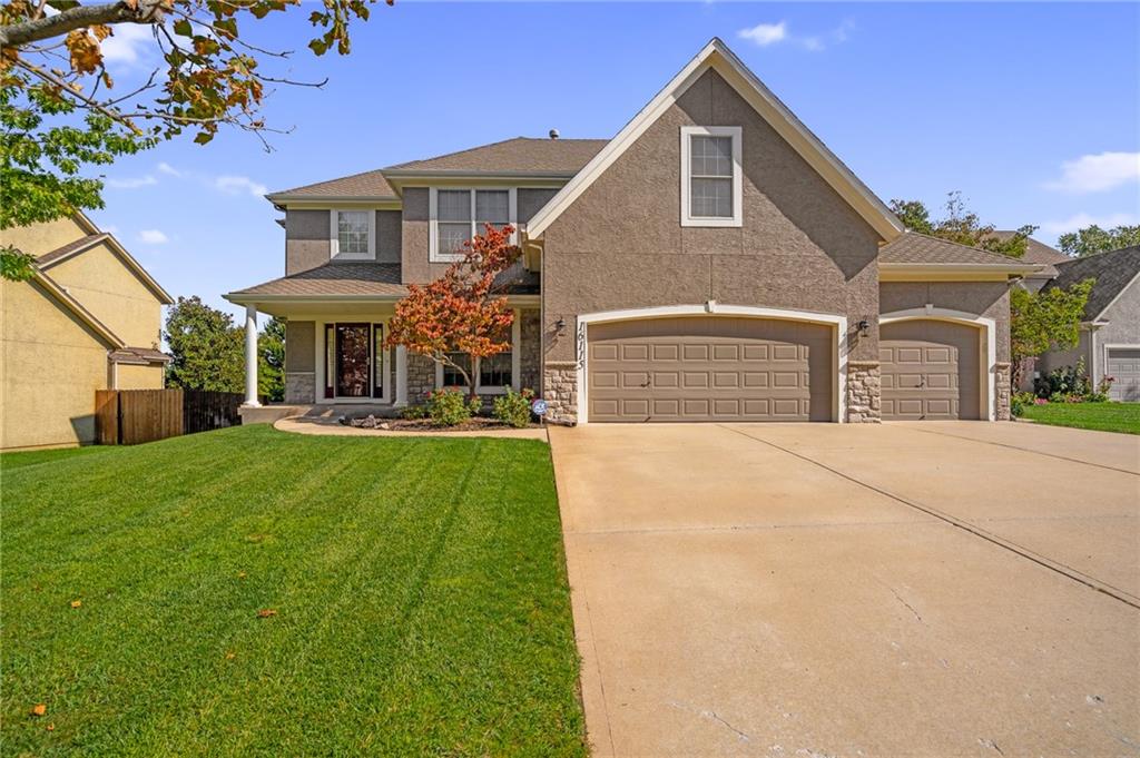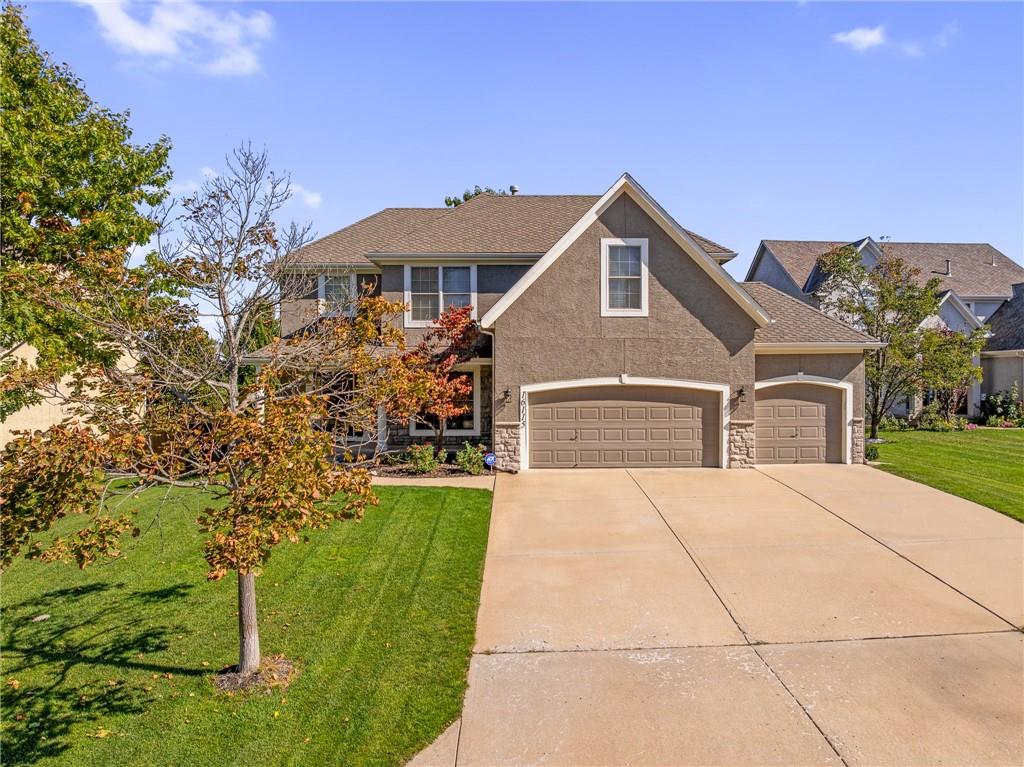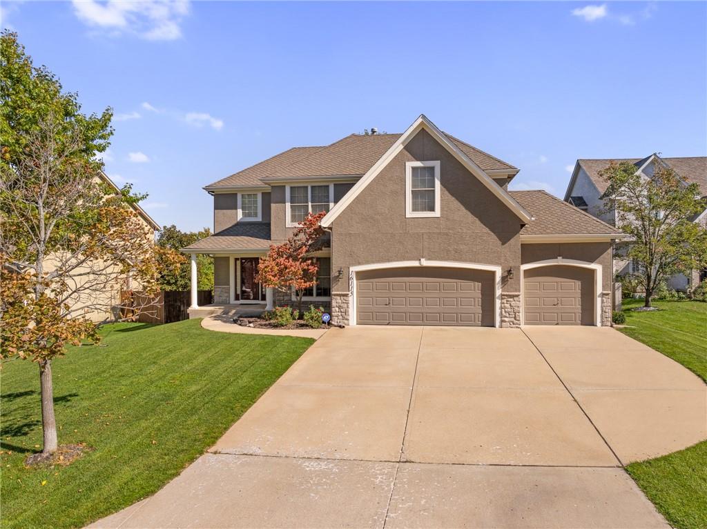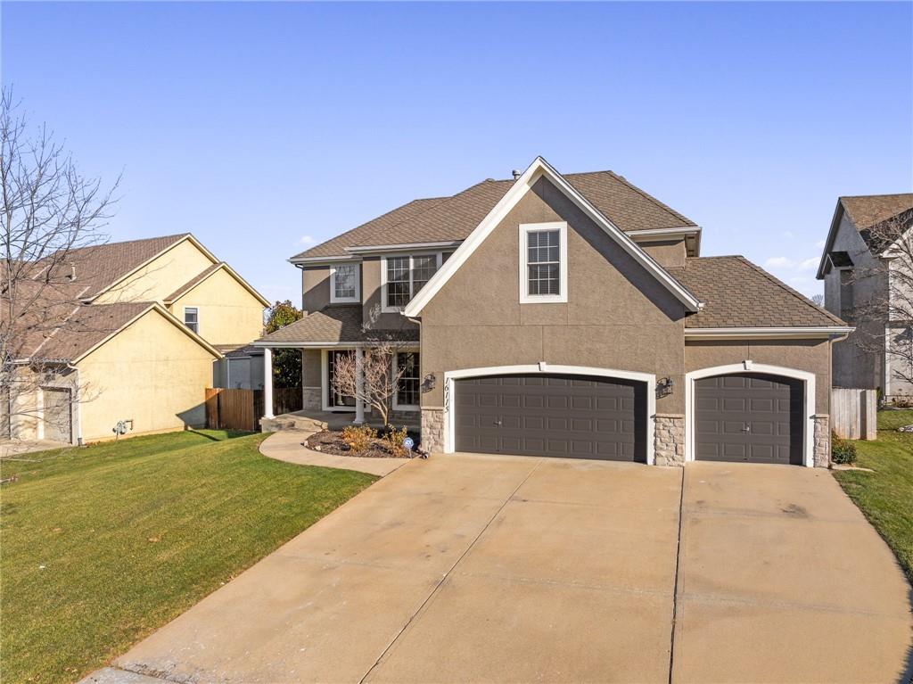 Popular Arbor Creek Estates two story home featuring 4 bedrooms, 4.5 baths, and a 3 car garage. Open concept 1st floor with formal dining room & great room with gas fireplace. The kitchen features a pantry, granite, peninsula, breakfast room, & refinished hardwood floors. The spacious primary suite offers a vaulted ceiling, ceiling fan, walk-in closet, tub, separate shower, and double vanity. The fully finished daylight basement includes a family room, office, ample storage, and a fourth full bath, perfect for guests and entertaining. Numerous updates include new carpet, refinished hardwood floors, fresh interior paint, and HVAC approximately 10 years old. Enjoy the fenced backyard with mature trees and a deck, ideal for outdoor entertaining. All stucco exterior & covered front porch. Quiet Cul-de-sac lot with trees, fence, & sprinkler system! Refrigerator, washer & dryer remain with property.