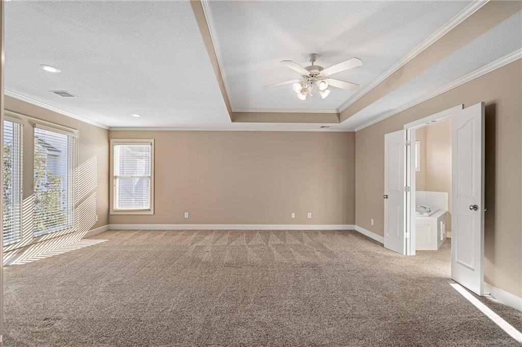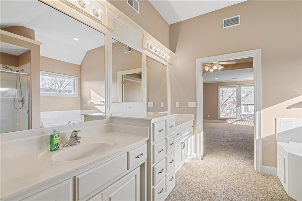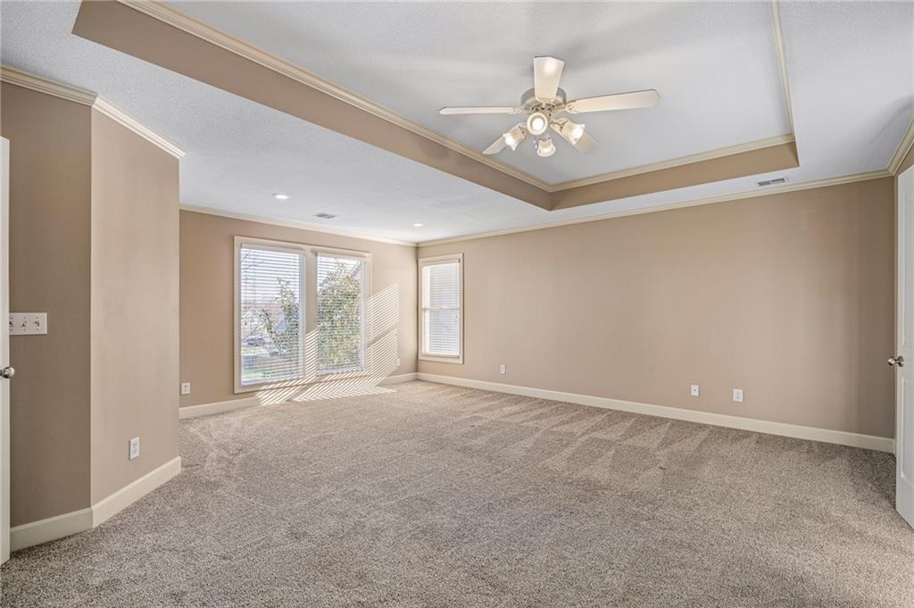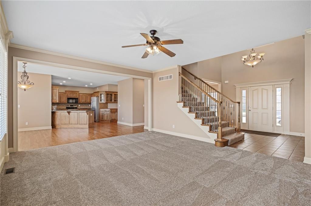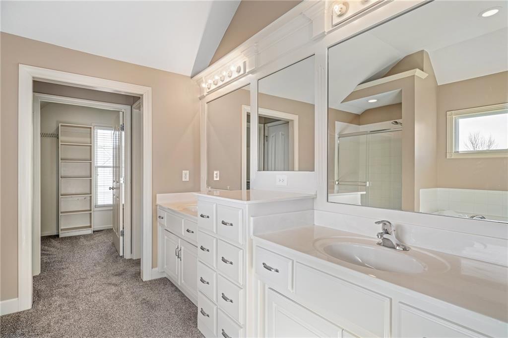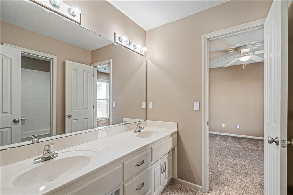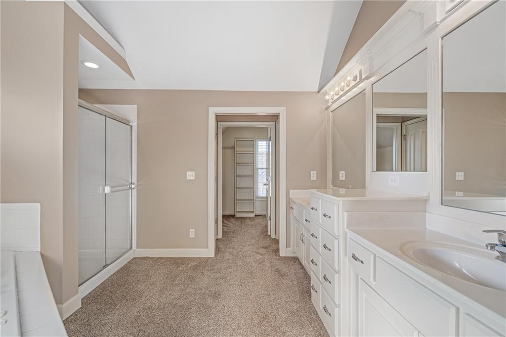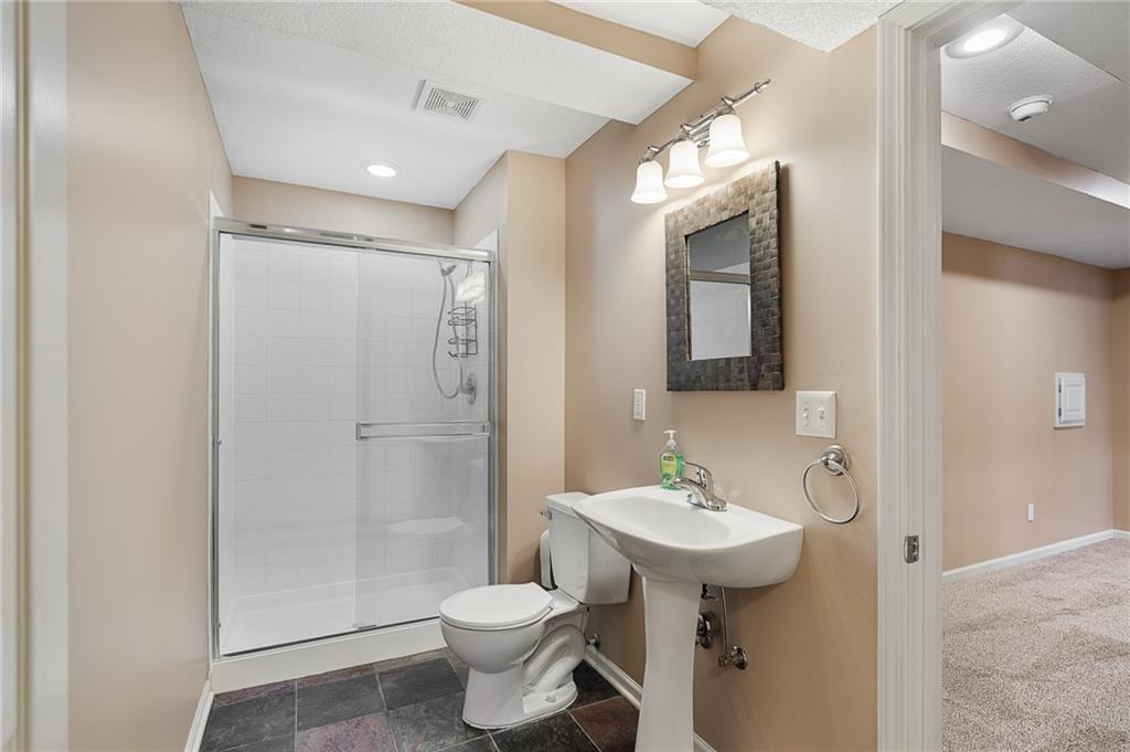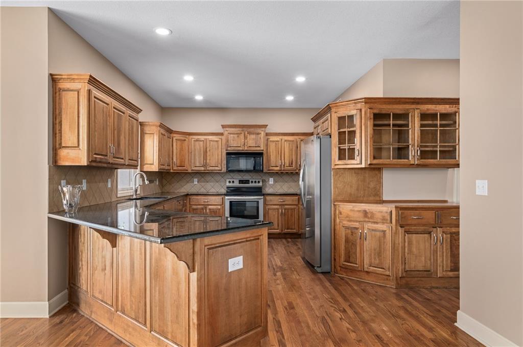 Popular Arbor Creek Estates two story home featuring 4 bedrooms, 4.5 baths, and a 3 car garage. Open concept 1st floor with formal dining room & great room with gas fireplace. The kitchen features a pantry, granite, peninsula, breakfast room, & refinished hardwood floors. The spacious primary suite offers a vaulted ceiling, ceiling fan, walk-in closet, tub, separate shower, and double vanity. The fully finished daylight basement includes a family room, office, ample storage, and a fourth full bath, perfect for guests and entertaining. Numerous updates include new carpet, refinished hardwood floors, fresh interior paint, and HVAC approximately 10 years old. Enjoy the fenced backyard with mature trees and a deck, ideal for outdoor entertaining. All stucco exterior & covered front porch. Quiet Cul-de-sac lot with trees, fence, & sprinkler system! Refrigerator, washer & dryer remain with property.