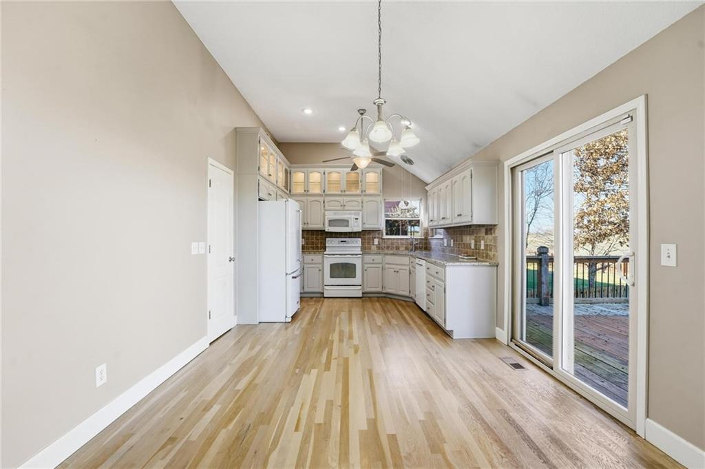 This inviting 3 bedroom, 2.1 bath split-level home in Cedar Wood offers a bright, open layout with hardwood floors and tall ceilings throughout the main living areas. The living room features a cozy fireplace and flows seamlessly into the kitchen, which is finished with hardwood floors, ample cabinetry, and easy access to the deck, making it ideal for everyday living and entertaining. The primary bedroom includes a walk-in closet and an en-suite bath with a walk-in shower and jetted tub, while two additional bedrooms share a full hall bath. The finished basement expands the living space with a large family room, half bath, and an impressive wet bar with kitchenette, offering flexibility for a recreation area, private suite, or small apartment setup with separate access. A two-car garage adds convenience, and the backyard deck provides a comfortable outdoor retreat. This well-maintained home offers versatile spaces and a functional floor plan ready for its next owner.