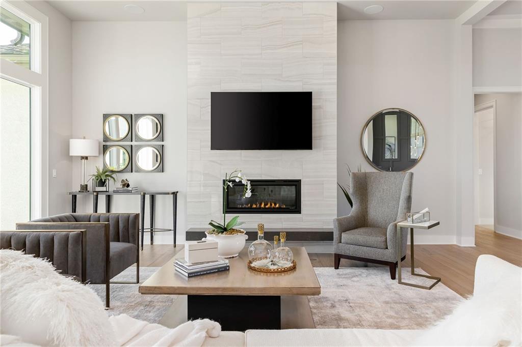 The highly sought-after Mustang plan by Willis Custom Homes is now underway at REGENTS PARK in Leawood on premier walkout Lot 1, with an estimated completion in Fall 2026. This reverse 1.5-story home blends timeless architecture with a livable layout designed for both everyday comfort and entertaining. Upon entry, a striking two-story feature wall along the staircase creates a strong architectural moment while maintaining a clean, spacious entry. The main level is anchored by a great room featuring three box-vaulted ceiling details with custom trim and cove lighting, adding depth and volume to the heart of the home. The kitchen flows seamlessly into the dining area and great room, while a generously sized pantry and convenient garage entry enhance daily functionality. Just off the kitchen, a flexible main-level room with sliding doors provides direct access to the covered deck—ideal for a home office, guest space, or additional living area. The covered deck features a fireplace and stairs leading down to the backyard, extending the living space outdoors and taking full advantage of one of the community’s limited walkout lots. The main-level primary suite offers a private retreat with a spa-like bath and generous closet space. The finished walkout lower level is a true extension of the home, centered around a large entertainment room with a full bar, dedicated wine storage, game table area, and access to the covered patio. Additional bedrooms and bathrooms provide comfortable accommodations for guests or family. Regents Park is Leawood’s newest maintenance-provided luxury community, tucked behind the 135th Street corridor with shopping, dining, and entertainment minutes away. Amenities include a pool, pickleball court, dog park, and walking trails. HOA is $450/month. Photos are of a previously completed model; finishes will vary. Reach out for a full list of options and the opportunity to customize this home.