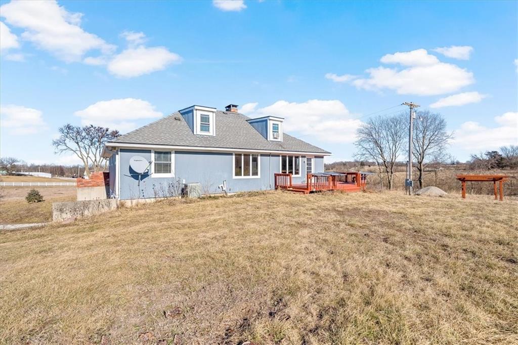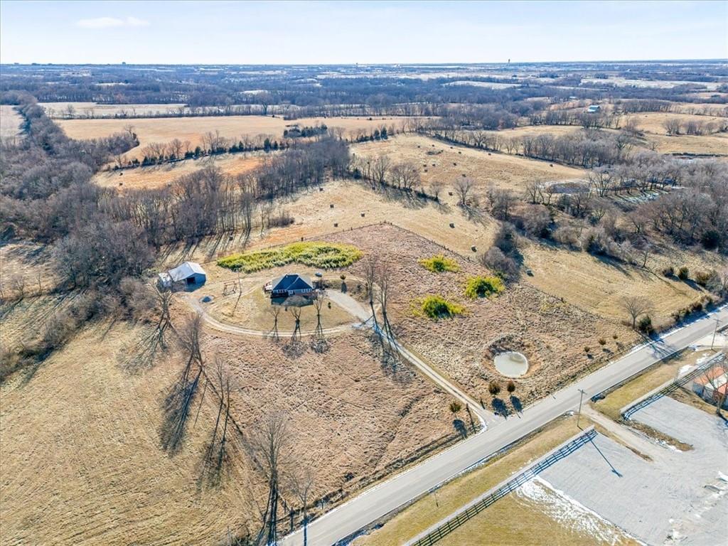 Wake up to quiet mornings, open skies, and views that stretch in every direction. Set on 4.71 serene acres, this ranch-style home is a rare blend of warmth, light, and breathing room. Sunlight fills the open, easy-flow floorplan, while a massive wood-burning fireplace becomes the soul of the home—perfect for slow evenings and gathered conversations. The oversized eat-in kitchen invites connection, featuring granite countertops, generous space to cook and linger, and windows that frame the surrounding landscape. Step outside or simply look out—every angle offers calm, privacy, and a sense of escape. The walkout basement holds exciting potential for additional finished living space and includes a storm shelter and food pantry, along with a stair lift on track for added accessibility. A small barn and wide-open acreage invite hobbies, animals, or simply the freedom to roam. With very little updating needed, this is a place to settle in, exhale and make your own.