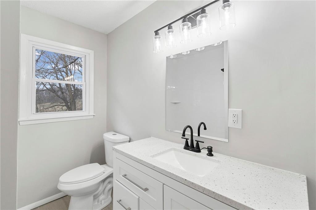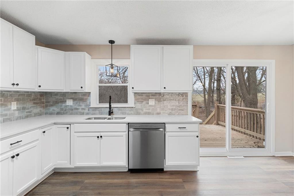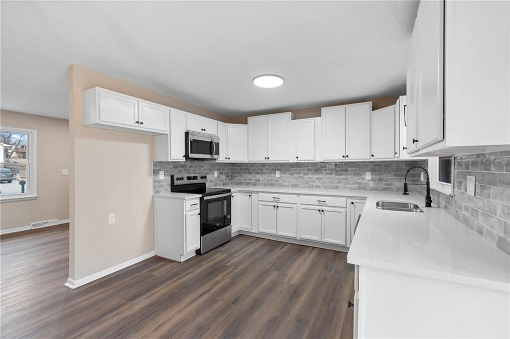 GORGEOUS REMODEL!!! Beautiful raised ranch home in the heart of Liberty. 3 bedroom, 1 bath, 2 car(tandem) garage with a very desirable, treed lot. NEW roof, NEW windows, NEW kitchen cabinets, NEW backsplash, NEW countertops, NEW flooring, NEW paint, and so much more. NEW deck with stairs leading down to the backyard for family gatherings. Additional recreational room on main level for more space. Great price for all the home has to offer!