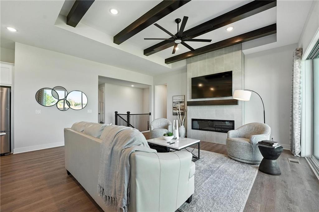 This is the one! The highly popular Thomas floorplan was built with a show model home in mind, featuring upgrades worthy of a model. Enjoy 12 inch wide, 8 foot tall stacking doors, wood beams in the great room, 8 foot doors on the main level, a gourmet kitchen with built in stainless steel appliances including gas cooktop, oven, and microwave, and real wood kitchen cabinets. The fully finished basement includes an additional bedroom and bathroom, making it perfect for Sunday night footballs and movie nights, an entertainer’s dream! Located in the desirable Grayhawk at Prairie Gardens community, residents enjoy a pool, playground, green space. Just minutes from The Legends shopping, dining, and entertainment, with quick access to K7 and major highways, and approximately 30 minutes to Kansas City International Airport. Top rated schools, nearby retail, and a vibrant community make this home a must see. Photos are of a similar model and may not reflect all finishes, upgrades, or features of this specific home. Home estimated completion February 2026.