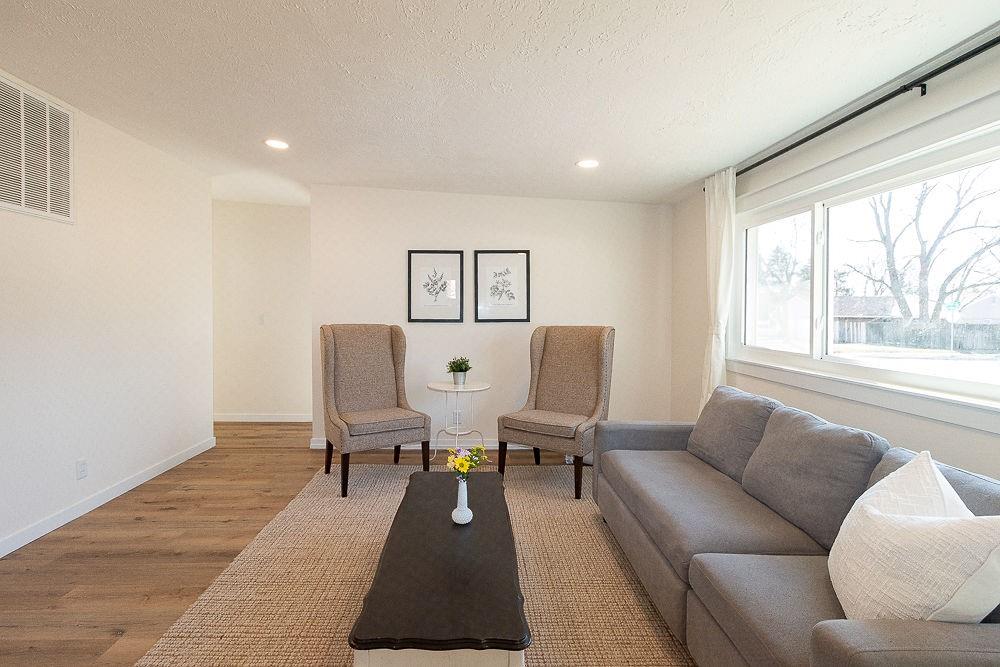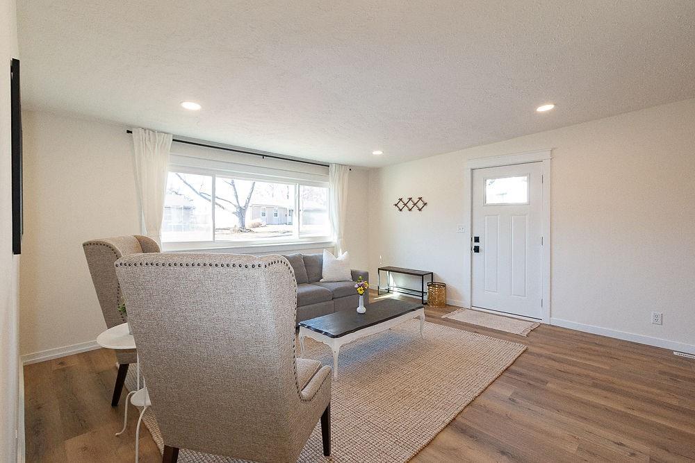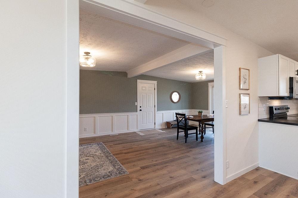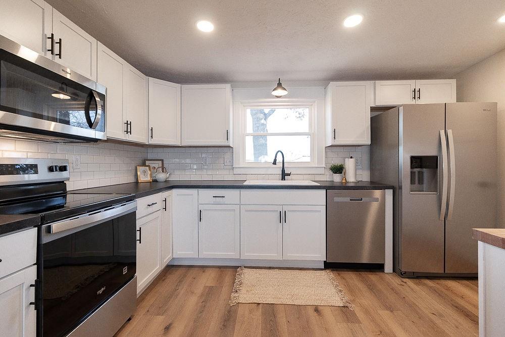 This lovely, remodeled home features expanded openings, dual living spaces and dining areas, and a fully renovated kitchen complete with new appliances, and a butcher block workspace. An upgraded header enhances the flow and architectural style throughout. All new windows, doors, trim, hardware, and garage doors have been replaced for a crisp, modern finish. The bathrooms are updated with new fixtures and vanities, while the laundry room has relocated hookups, new drain lines, and added shutoffs. New vinyl plank flooring, bedroom carpet, and newly interior paint on ceilings, trim, walls and doors, create a fresh, move-in-ready feel. Electrical upgrades include new lighting, switches, outlets, an updated panel and mast, plus added circuits. Added insulation, serviced HVAC components, and updated window treatments complete this transformation. Exterior improvements include new gutters, re-graded drainage, tree removal, fresh soffits and fascia, and roof repairs. Hosting and outdoor possibilities are abundant with this spacious corner lot and backyard area.
