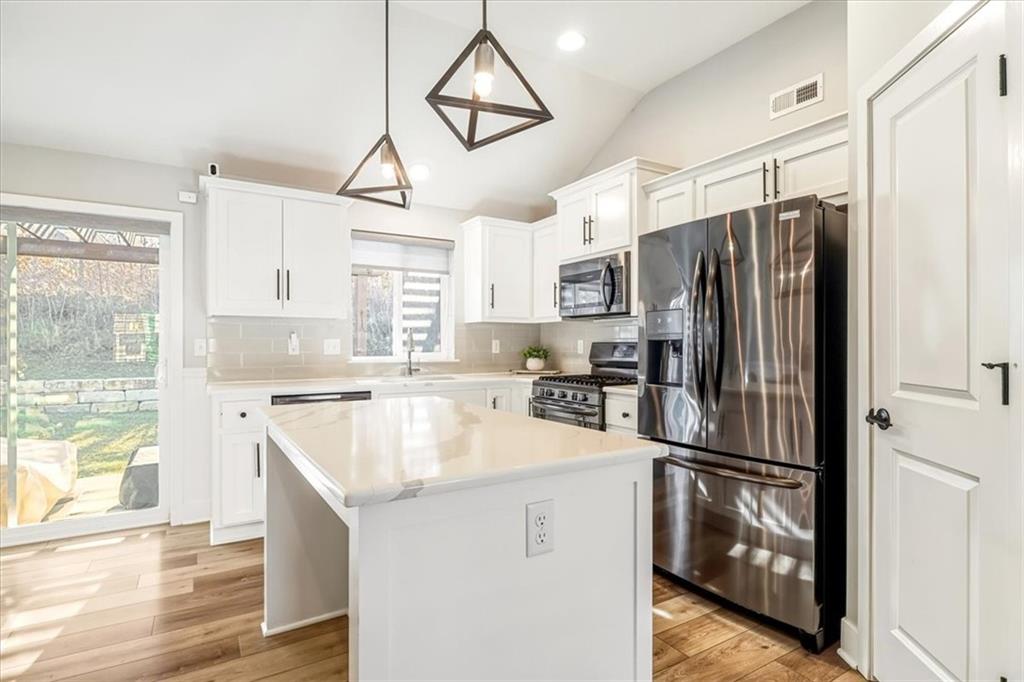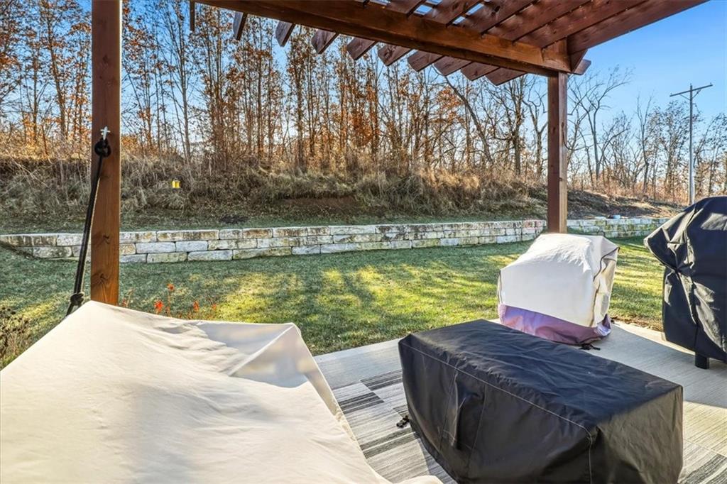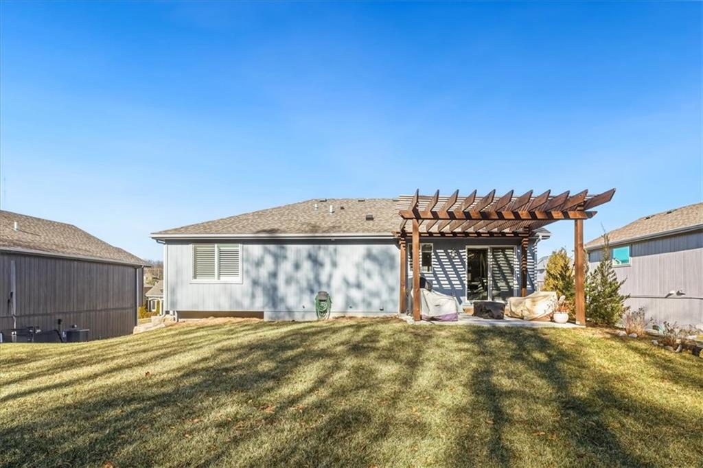 Immaculate Four-Year-Old Home with Premium Upgrades in Blue Springs School District Welcome to this beautifully maintained, nearly new home offering modern comfort and thoughtful upgrades throughout. Gourmet Kitchen: Enjoy cooking in a chef’s kitchen featuring quartz countertops, black stainless steel appliances, a gas range, a pantry and abundant cabinet space. Open Layout: The spacious dining and breakfast area showcases custom wall framing, perfect for casual meals or entertaining guests. Custom Details: High-quality blinds and shutters are installed throughout, adding style and privacy. Versatile Lower Level: The finished lower level includes a private full bath, ideal for entertaining, guest accommodations, or additional living space. Private Backyard: Relax on patio under pergola or in the backyard, which provides additional privacy—great for outdoor gatherings or peaceful evenings. Garage Features: Additional cooking space and cabinetry have been added at the back of the garage, offering extra room for meal prep or projects. Located within the Blue Springs School District, this home combines convenience, functionality, and modern style. Move-in ready and meticulously cared for, it’s a must-see! Lower level includes a private full bath—ideal for entertaining or guest privacy Backyard offers enhanced privacy Additional cooking space and cabinets at the back of the garage