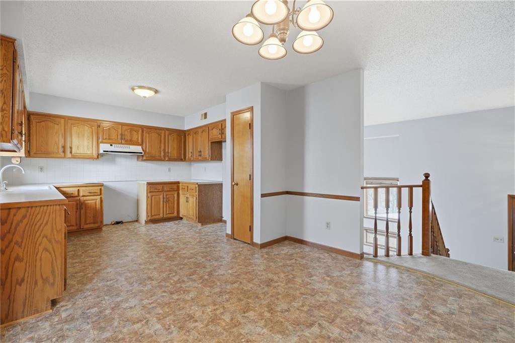 Inviting front-to-back tri-level split with sub-basement offering three bedrooms, two full baths, and one-half bath in a comfortable and functional layout. Vaulted ceilings in the living room highlight a wood-burning fireplace and classic stain-and-grain woodwork that carries throughout the home. Flooring includes a combination of carpet and linoleum. Oversized primary suite features a private bath and walk-in closet, while two additional bedrooms and a full hall bath provide flexibility for family, guests, or home office use. Main-level laundry is conveniently located in the hallway near the bedrooms. Finished lower-level family room adds valuable living space and offers walk-out access to the backyard and deck. Unfinished sub-basement measuring approximately 23 x 13 provides excellent storage or future finishing potential. Oversized two-car garage approximately 19 x 29 offers ample room for vehicles, storage, or workspace. Approximately 1,500 finished square feet above grade. Home is priced to reflect cosmetic updating needs and presents a strong sweat-equity opportunity without requiring a full renovation, ideal for buyers or those looking to personalize and build equity in the Smithville market. Sellers inherited the property and have never occupied the home. Disclosures completed to the best of their knowledge.