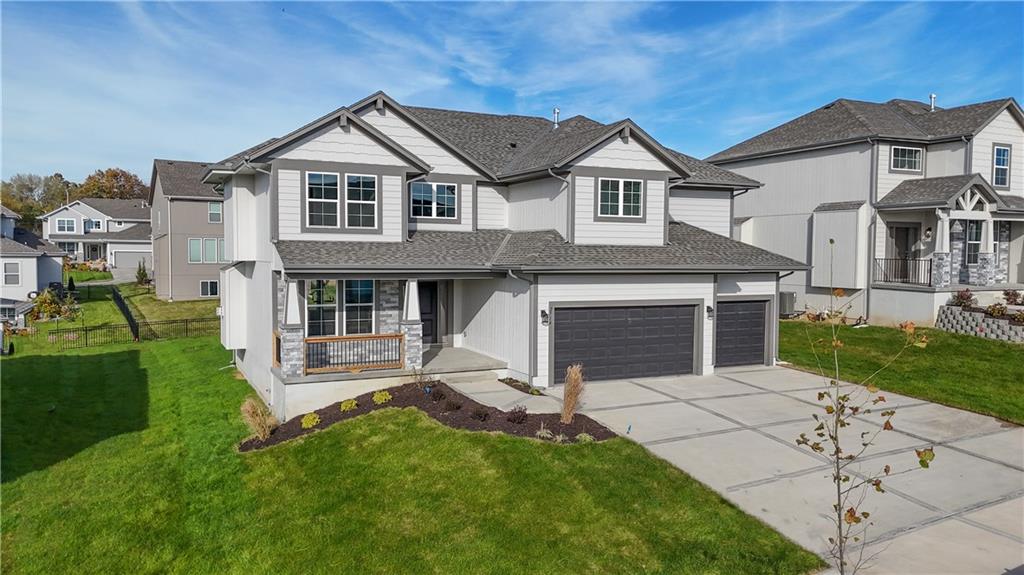 The popular Levi II by Prieb Homes on a daylight lot is now available. This updated version of the beloved original Levi plan offers expanded square footage and premium upgrades throughout. The open-concept main floor features a spacious kitchen and breakfast area, a larger granite center island with ample seating, and upgraded granite countertops in the kitchen. Kitchen offers soft closet doors and drawers. Enjoy versatile living with a main floor flex room—perfect for a home office or 5th bedroom—plus a mud room with boot bench and entry closet. Upstairs, the expanded master suite boasts a separate sitting area, larger walk-in closet for 2 different sections, and an upgraded primary bath with a freestanding tub. The laundry room has been enhanced with additional workspace, and the open loft with window provides extra living space. Located within walking distance to Lake Olathe, this home also offers access to neighborhood amenities including trails, a pool, and playground. Don’t miss your chance to own this upgraded and spacious home in a prime location!