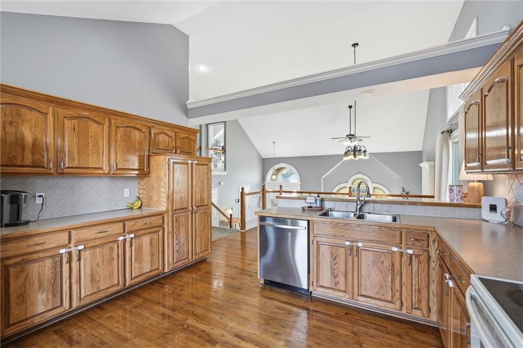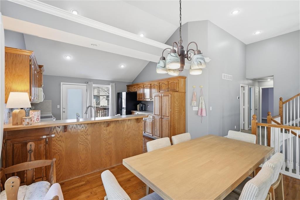 Welcome Home! This beautifully maintained home is tucked into the desirable Rock Hill neighborhood with inviting curb appeal and the perfect balance of comfort and functionality. Inside you'll find tasteful paint colors and a welcoming atmosphere, perfect for both daily living and entertaining. The vaulted ceilings in the family room and kitchen help showcase all of the natural light the the home offers. Enjoy the kitchen and dining area's hardwood floors and get cozy around the family room's gas fireplace. The master bedroom features a spacious ensuite bathroom and large walk-in closet. The finished walkout basement provides plenty of extra living space with another large family room, full bathroom, and 4th bedroom. Need even more space? Check out the finished sub-basement! Enjoy the outdoors from the deck off the kitchen or covered patio. The fenced backyard is large and flat, perfect for pets and kids to play! Don't miss the new HVAC (2024), new roof (2023), new kitchen sink and dishwasher, and new wifi garage door opener! You'll love having access to the neighborhood pool and community events! Located close to shops, dining and highway access. Don't miss out—this one's ready for you to move right in!