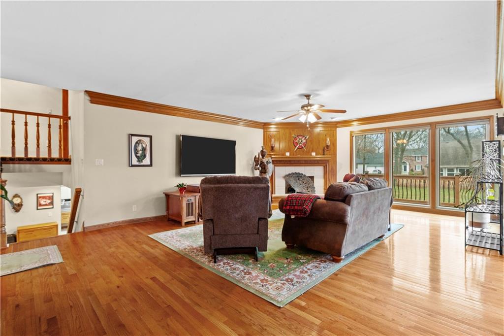 This spacious, all-brick home in the sought-after Weatherstone West neighborhood is well suited for both entertaining and everyday living. The generous main-level living spaces easily accommodate larger gatherings while still feeling comfortable for smaller get-togethers. The kitchen features granite countertops, excellent cabinet storage, and an abundance of pantry space. Natural light pours in through large windows and a sliding door off the eat-in area that opens to a huge deck—ideal for outdoor dining or relaxing evenings. A separate dining room off the kitchen adds even more flexibility for hosting. The full sized laundry room is off the kitchen, providing additional cabinet storage and built-in ironing board. The large living room includes a gas fireplace and floor-to-ceiling windows that overlook the level, fenced backyard. Throughout the main level, you’ll notice quality woodwork, crown molding, and hardwood floors that add warmth and character. Upstairs, the primary bedroom offers a true retreat with plenty of room for full-size furniture, plus a bonus nook perfect for a reading corner or sitting area. The ensuite bath includes double vanities, a newly remodeled, spacious walk-in shower, and a skylight that brings in great natural light. An additional bedroom and full bathroom complete this level. The walk-out lower level provides another generous living area with a second gas fireplace and access to the patio through a newer sliding door. The additional bedroom on this level could also be converted back into two bedrooms if desired, and there is another full bathroom nearby. The oversized garage is a standout feature—nearly 28' deep and 38' wide—offering ample space for a full-size truck, boat, workshop, or extra storage. Over the past 6 years, the owners have made thoughtful updates including new upstairs carpet, backyard fencing, refinished driveway walls, a remodeled primary shower, Champion windows & rear slider, and a replaced & sealed deck.