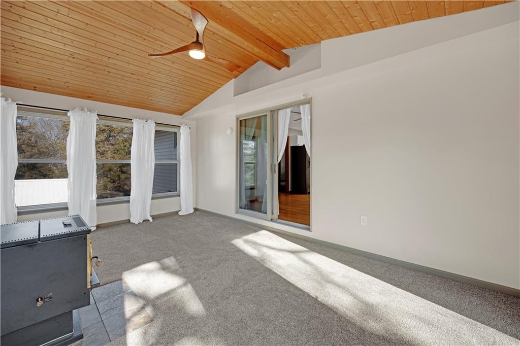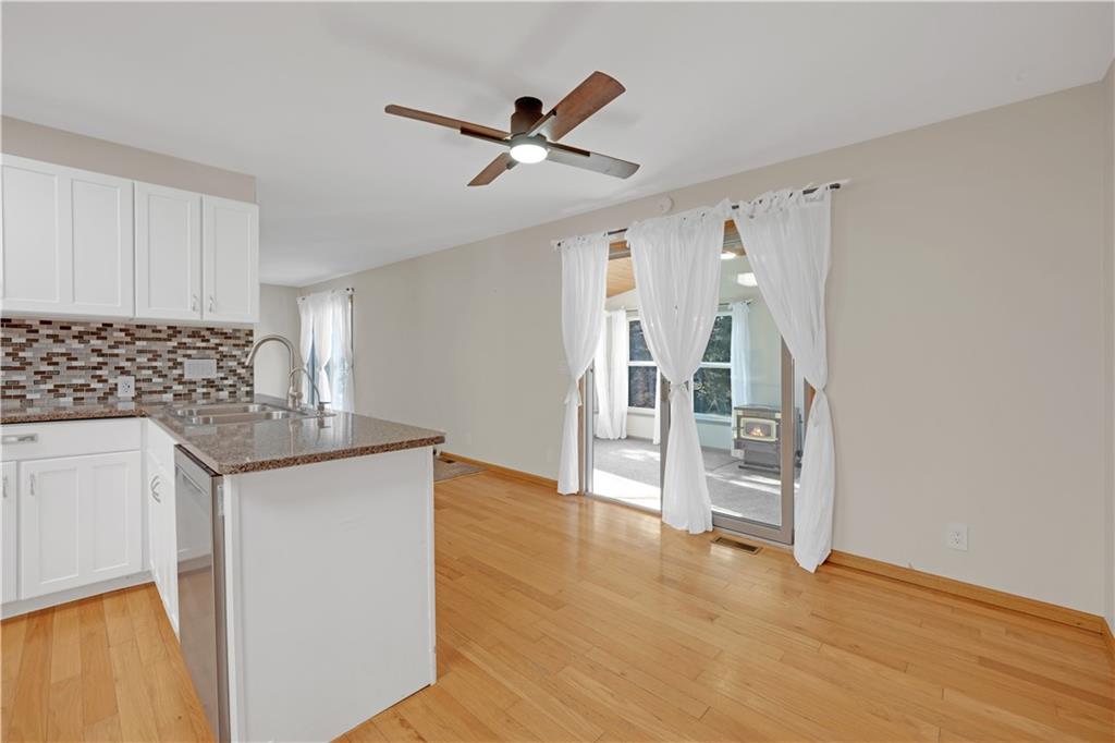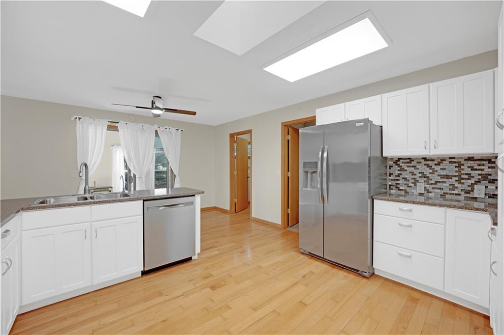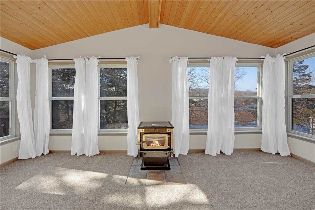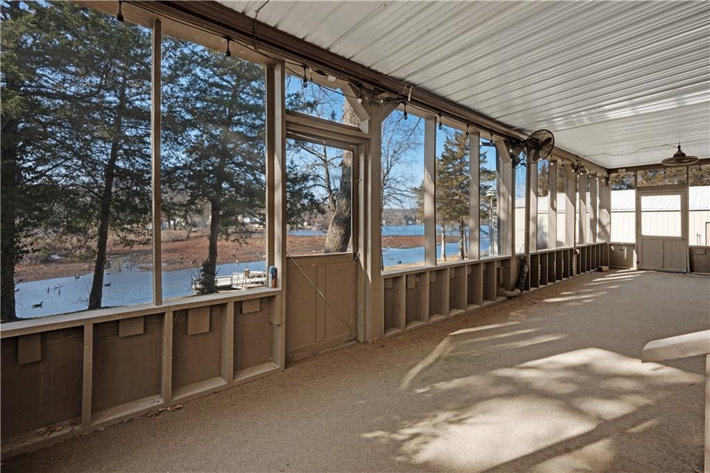Spacious waterfront home offering approximately 4,671 sq ft with 4 bedrooms and 3 full bathrooms on Gatcliff Lake in Warsaw, Missouri. The property features approximately 280 feet of water frontage and a private dock with lift. The main level includes an entry foyer with skylight, office area, two dining areas, and a kitchen with custom cabinetry, quartz countertops, stainless steel appliances, and skylight. The open-concept living areas lead to a sunroom with vaulted wood ceiling, pellet stove, and lake views, plus a large deck. The primary bedroom includes an adjoining bathroom and walk-in closet. A second bedroom, full bathroom, laundry area, and attached two-car garage are also on the main level. The lower level offers a family room with pellet stove and lake views, two additional bedrooms, a full bathroom, and a screened-in porch. Additional features include a 24’ x 30’ detached two-car garage with storage, a lakeside fire pit, and water feature. Located approximately 10 minutes from downtown Warsaw with access to shopping, dining, and nearby boat ramps to Lake of the Ozarks and Truman Lake. Suitable for full-time or seasonal use.